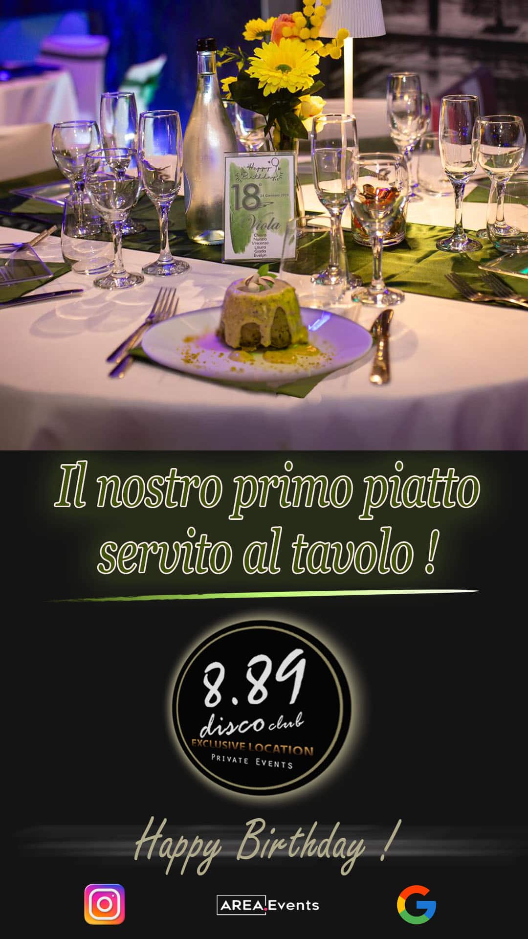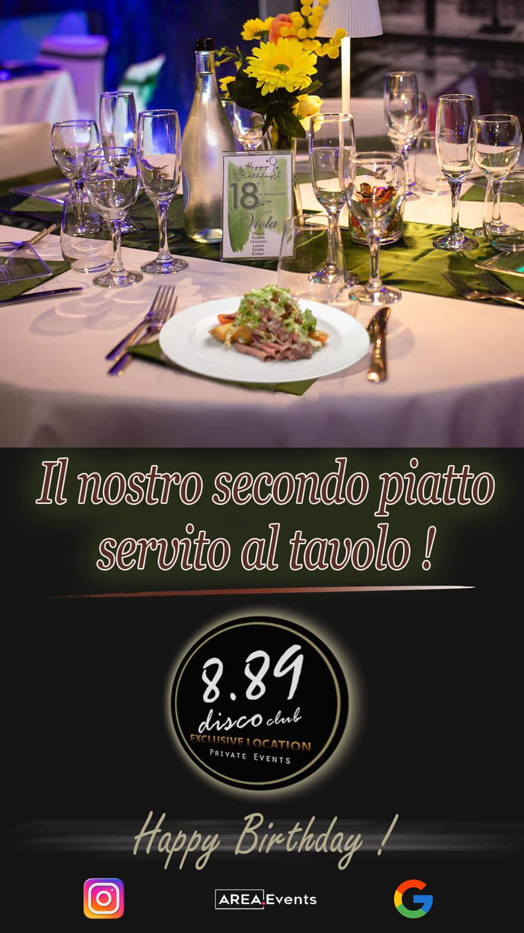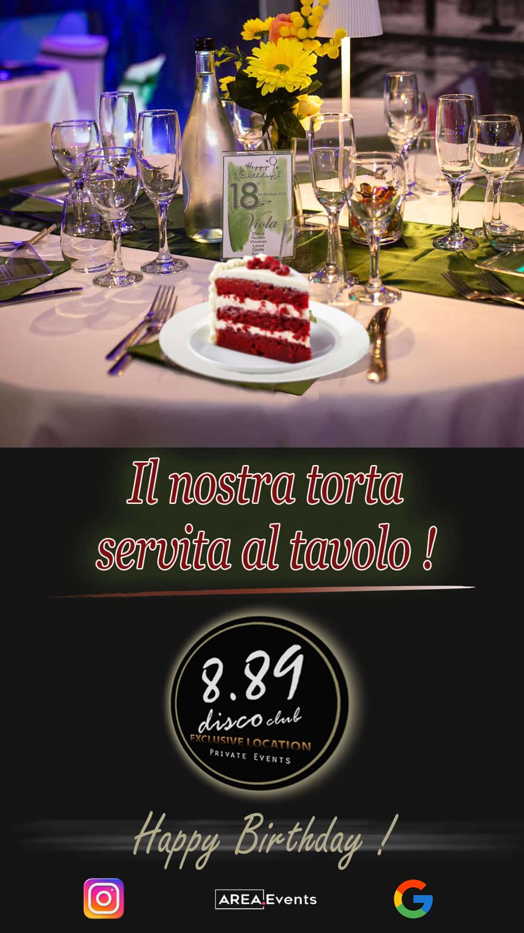 8.89 una location in cui poter organizzare la tua festa con servizio al tavolo o buffet servito, senza rinunciare al confort di vivere il proprio evento in una location riservata ed in totale esclusiva.