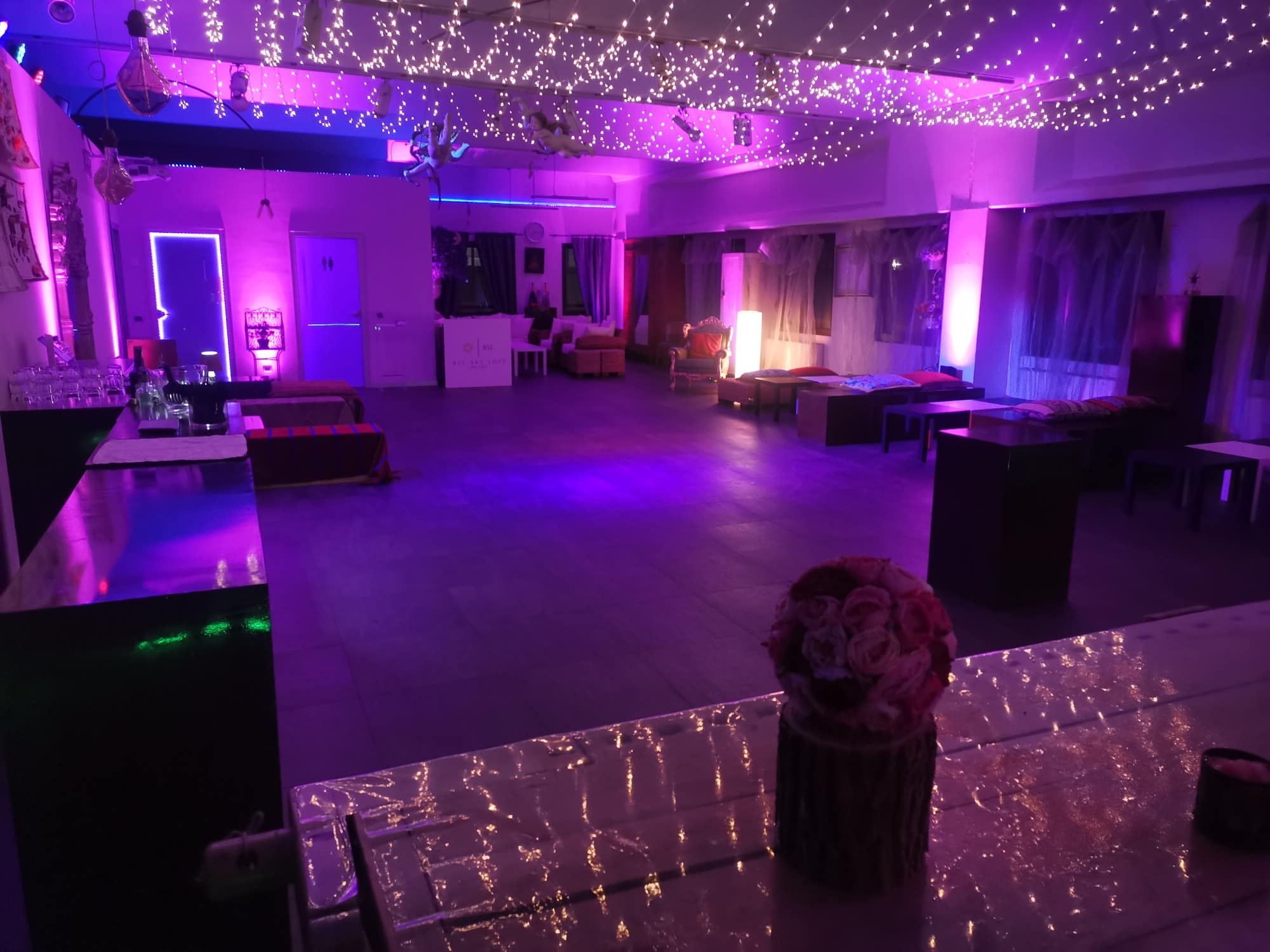Ho affittato la saletta per il mio 18esimo compleanno, la location è carina, anche se avrei voluto avere la possibilità di togliere suppellettili un po' fuori contesto, e purtroppo siamo stati accolti con le decorazioni abbandonate dalle precedenti feste di compleanno. La gestione invece non è stata molto apprezzata, né da me, né dagli invitati: abbiamo avuto il fiato sul collo tutta la serata, tanto che i cocktail appena poggiati sul tavolo, venivano immediatamente sparecchiati, ancora pieni. Ci è stata messa fretta tutta la serata come se non vedessero l'ora che ce ne andassimo, tanto che ci siamo sentiti costretti a lasciare la sala prima dell'orario stabilito, poiché già più di un'ora prima dell'uscita avevano iniziato a sgomberare i tavoli, con tanto di scopa e detersivo davanti agli invitati. Diciamo che l'ospitalità non è il loro forte.