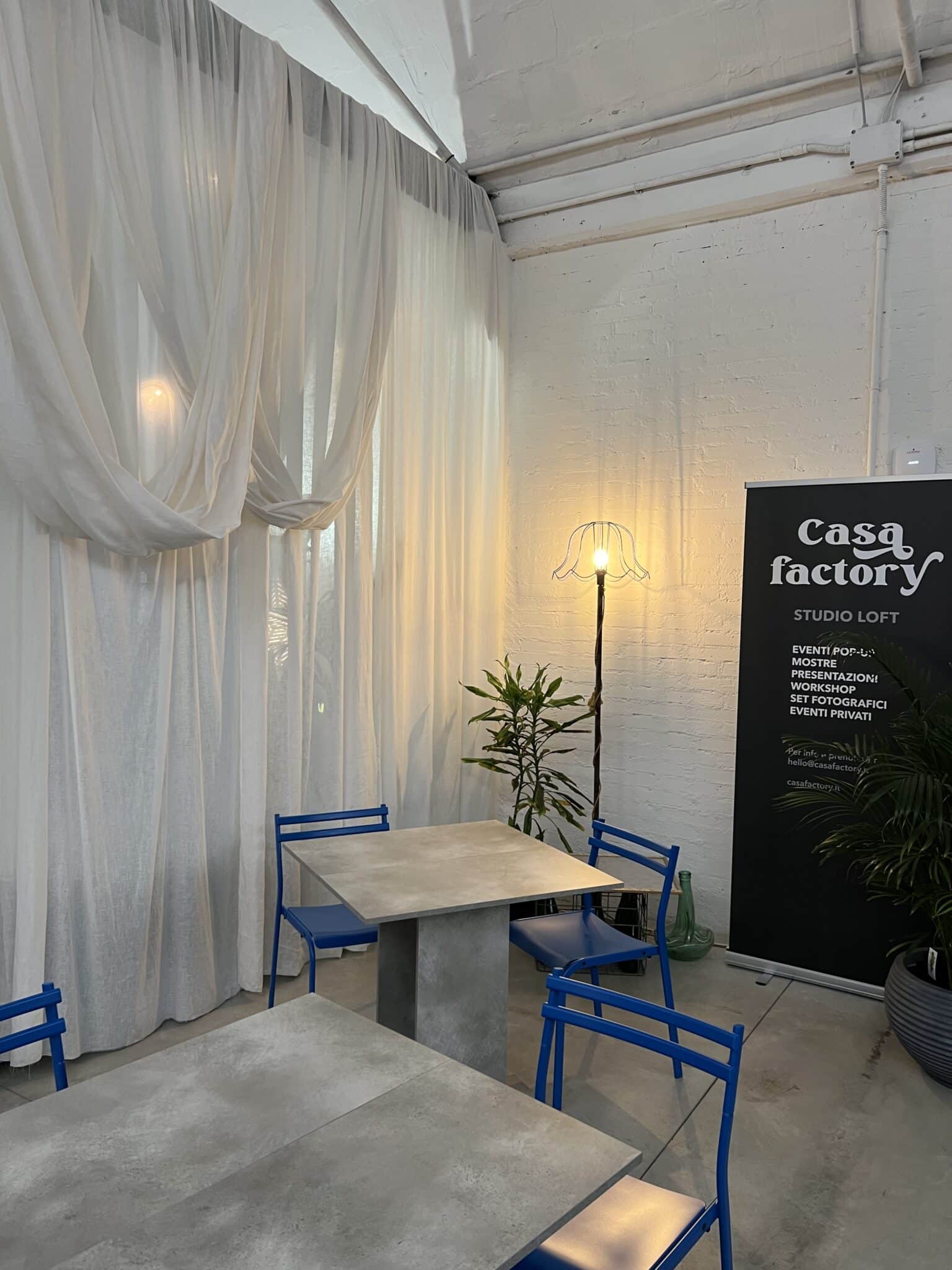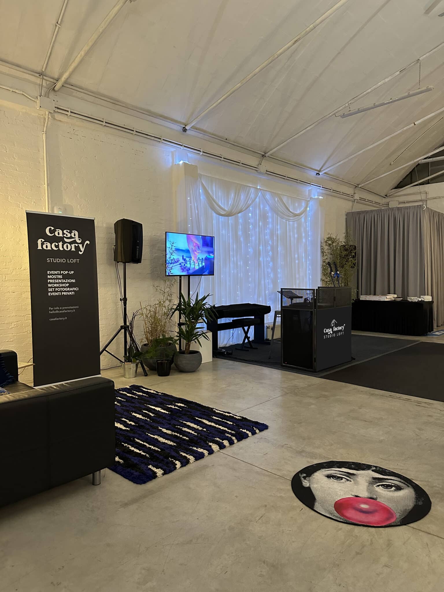 Il grande open space di quasi 200mq è stato adibito a studio pop-up che si trasforma per ospitare il tuo evento.