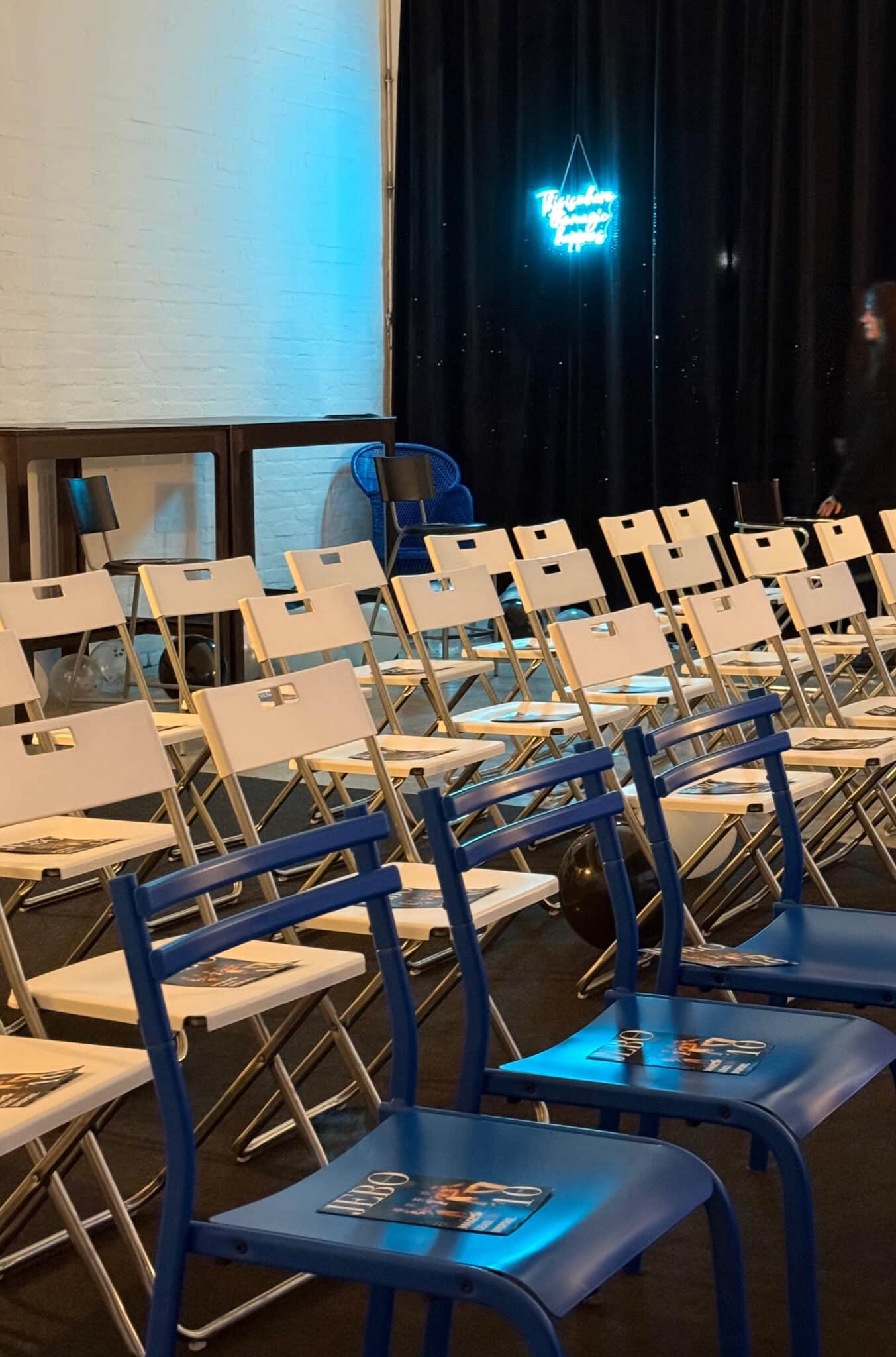 All’entrata si trova il guardaroba e l’eventuale desk per l’accreditamento, oltre all’area merchandising.