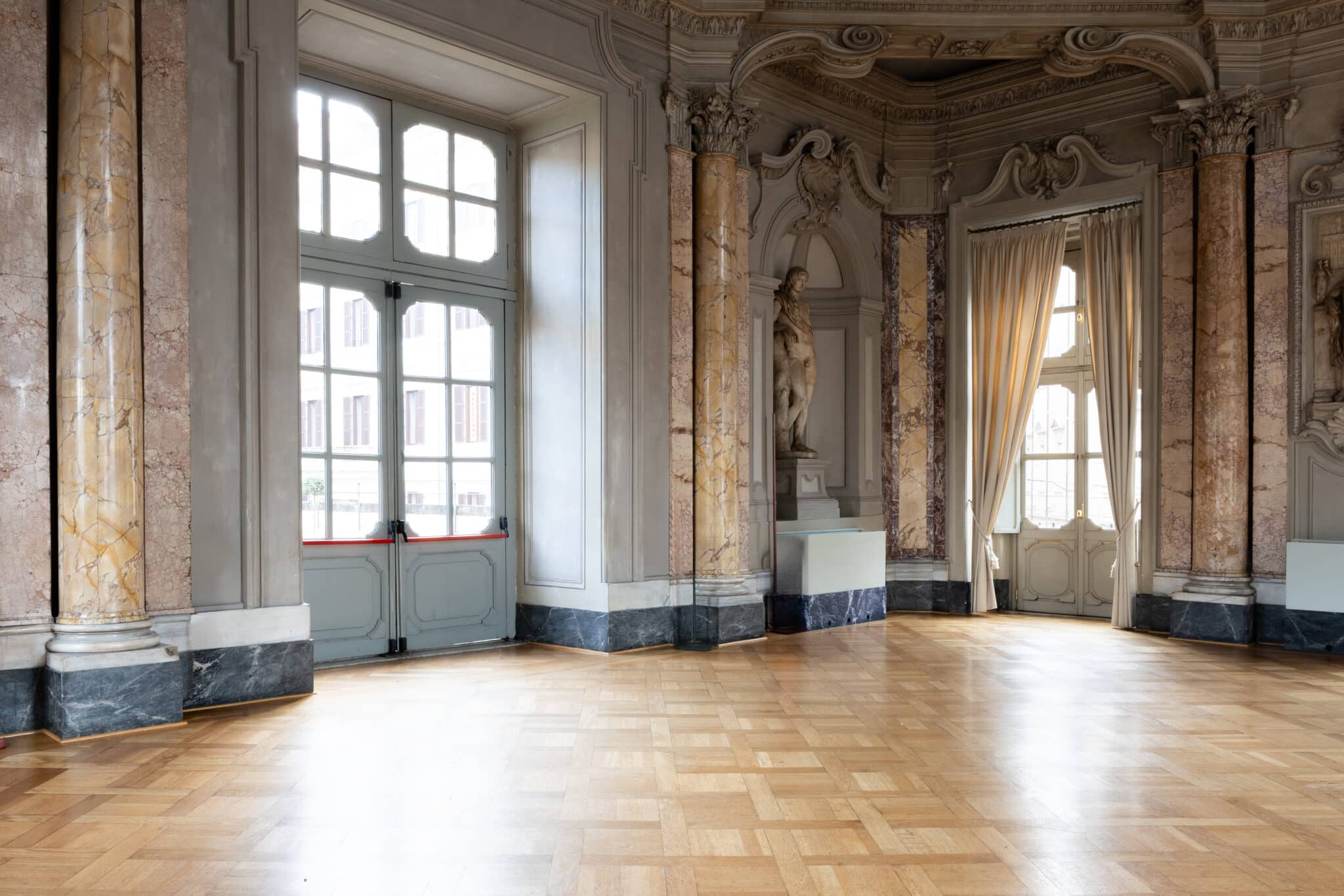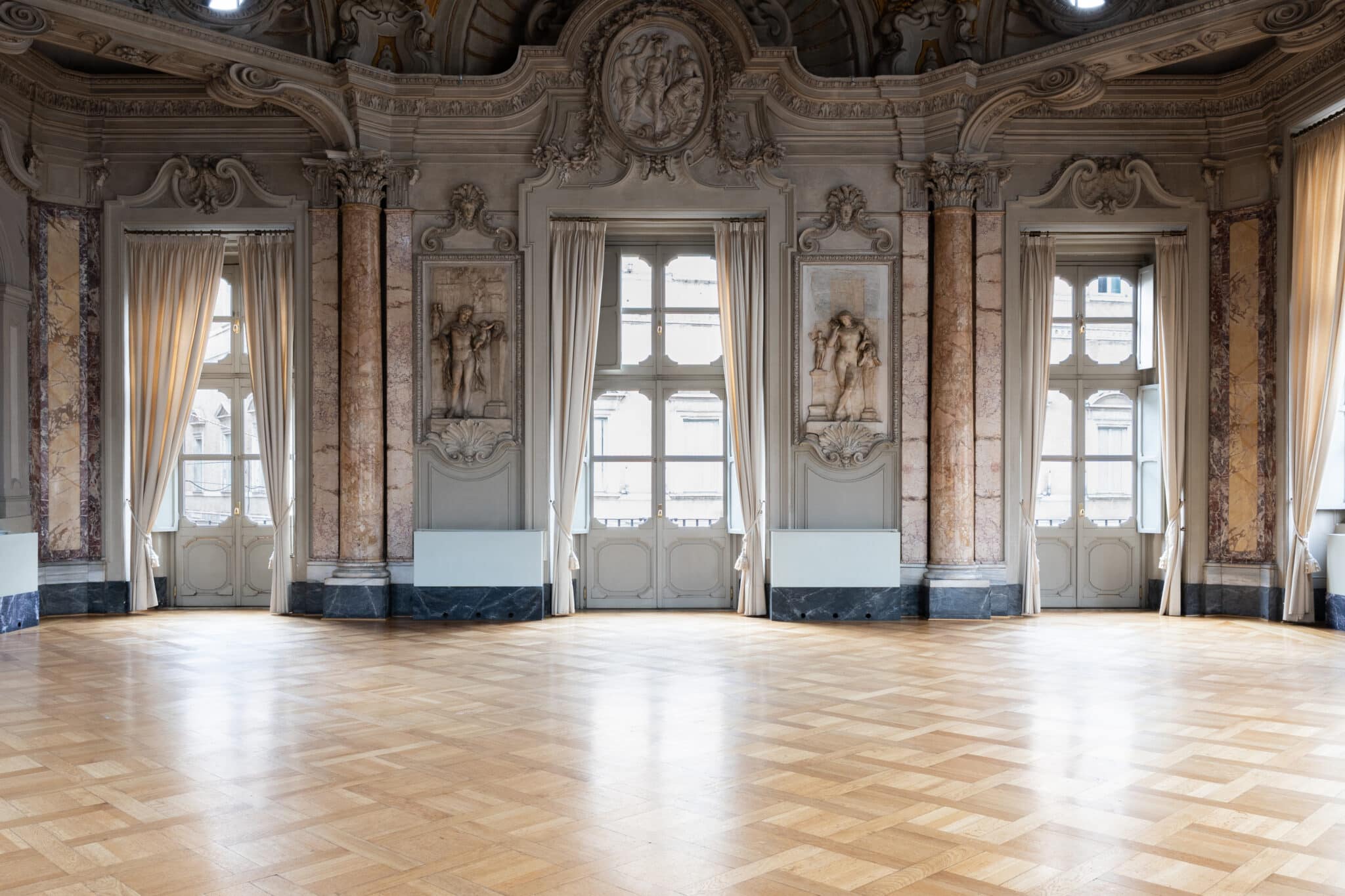 Inserita all’interno di un edificio storico, questa ampia sala si distingue per l’eleganza sobria e l’atmosfera silenziosa e raccolta.