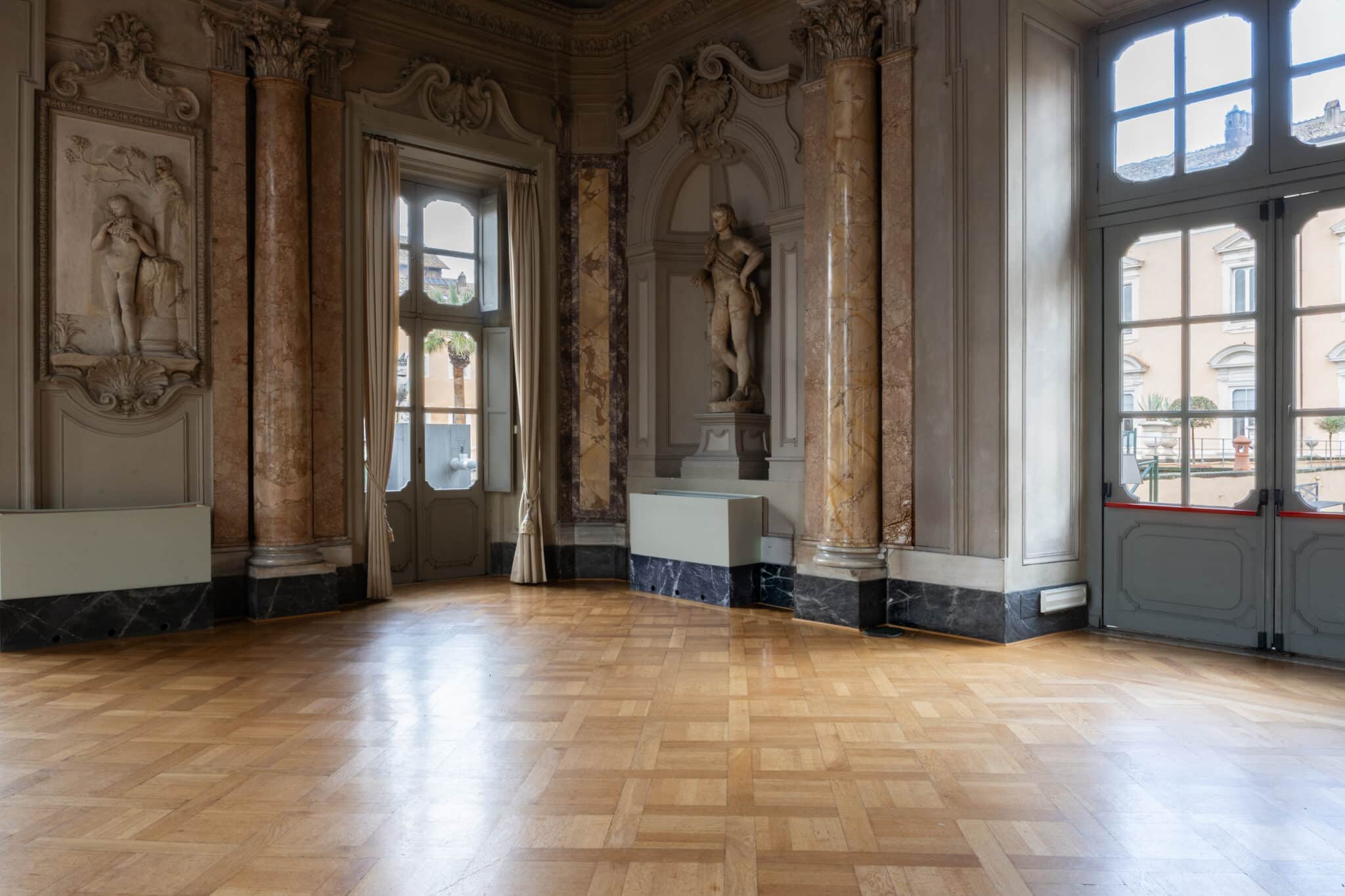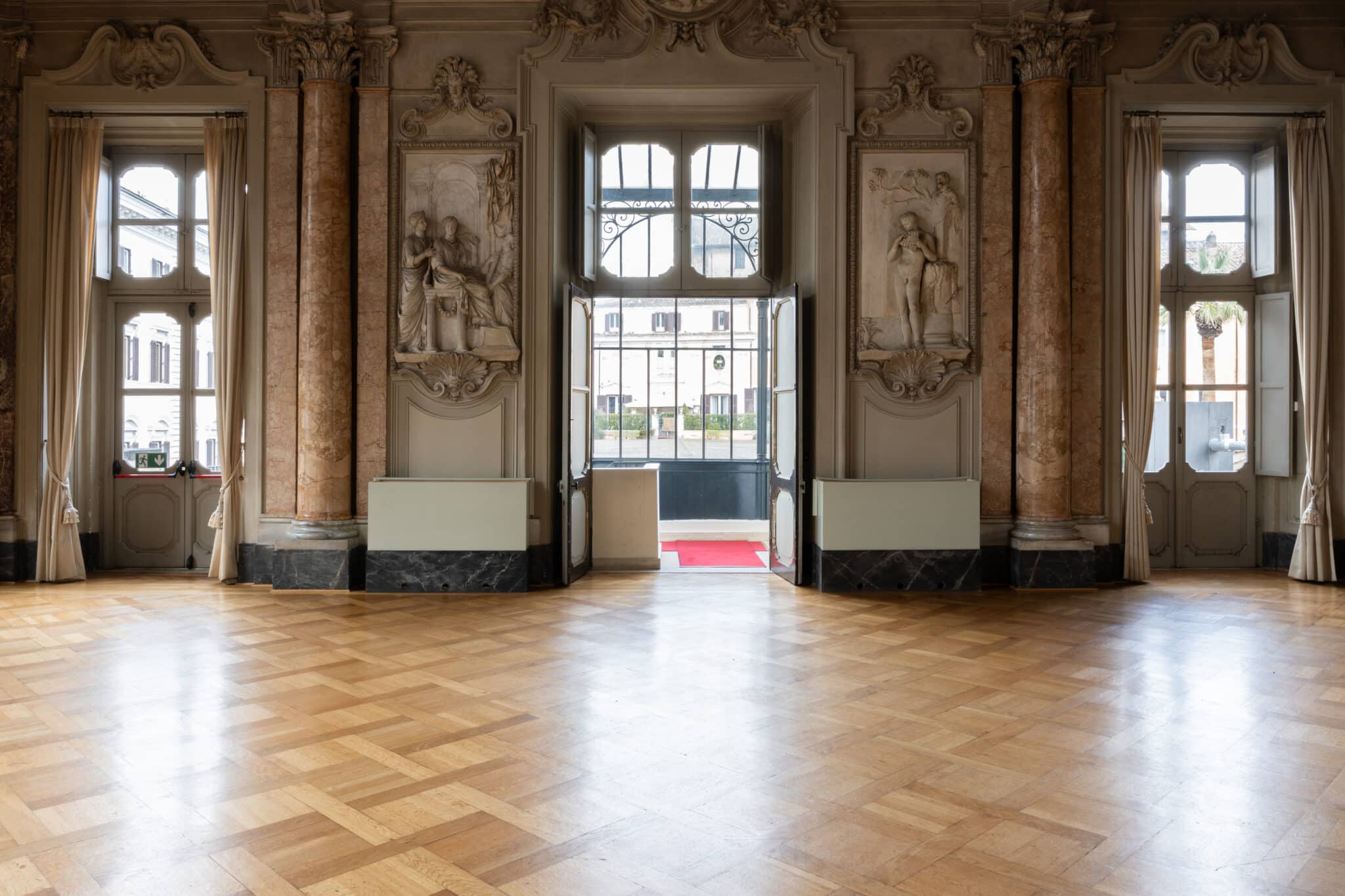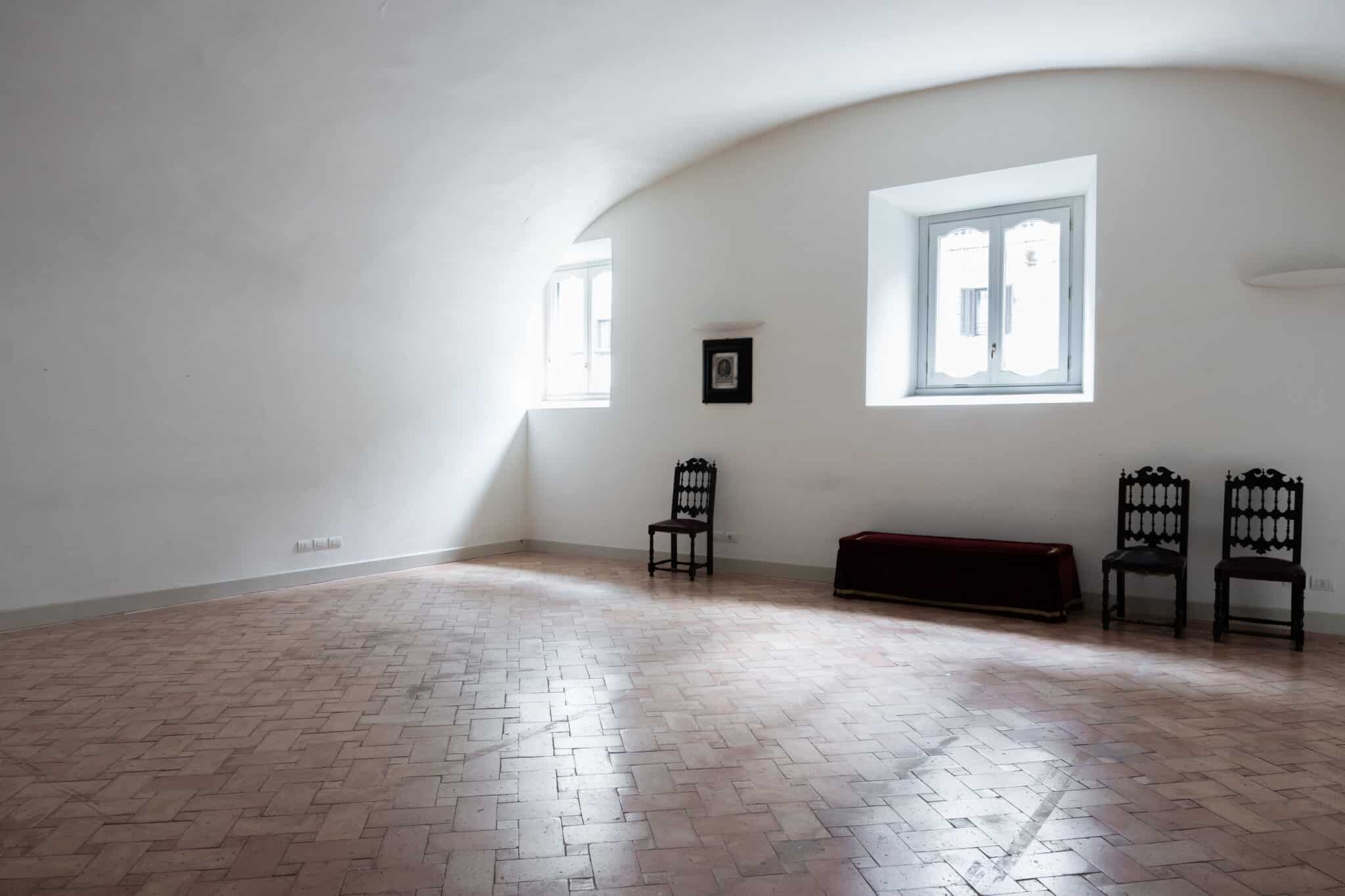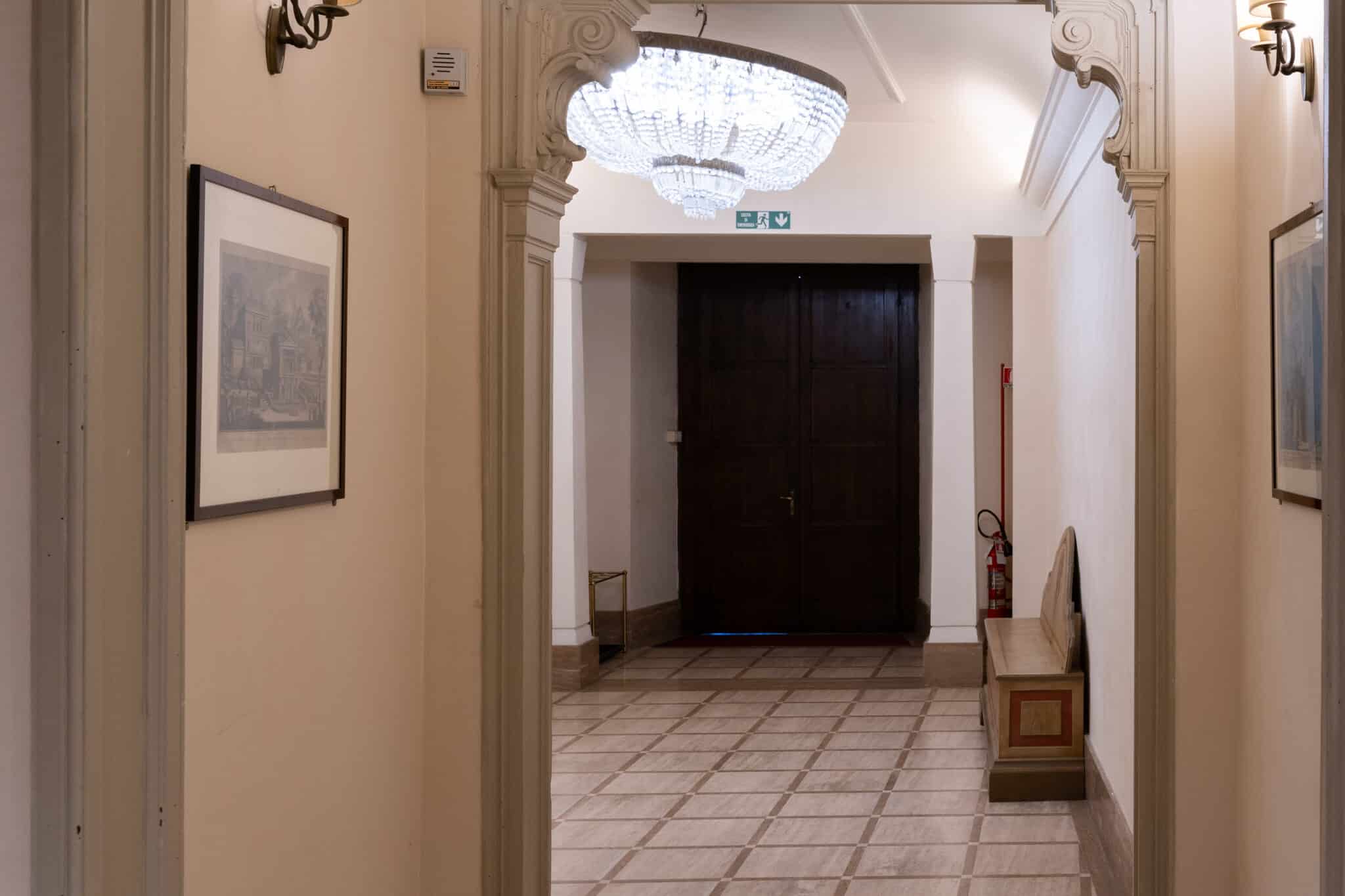 La presenza di arredi d’epoca, opere incorniciate e dettagli architettonici essenziali rende questa location particolarmente adatta a eventi eleganti, presentazioni, incontri istituzionali, mostre temporanee e produzioni fotografiche o video che richiedano un contesto storico autentico e di grande personalità.