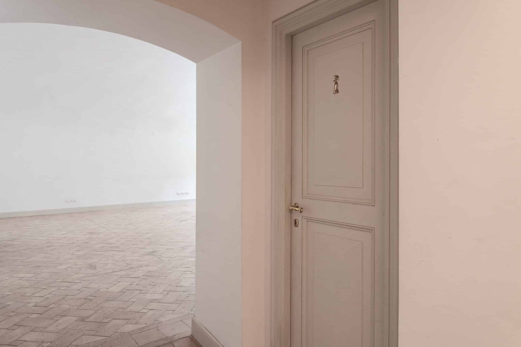 Gli ambienti comunicanti, visibili attraverso ampie aperture ad arco, ampliano la percezione dello spazio e permettono una gestione fluida e versatile degli allestimenti.
