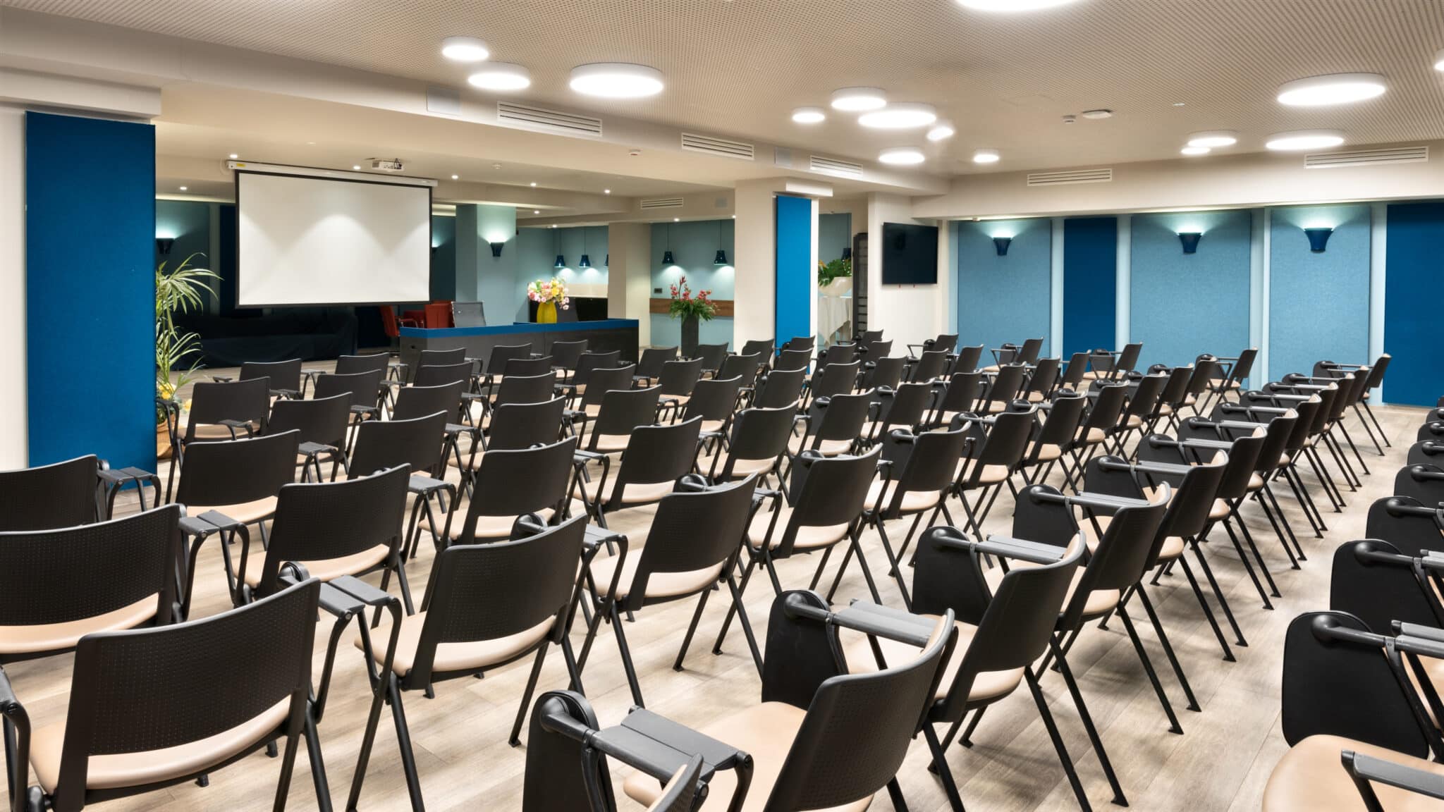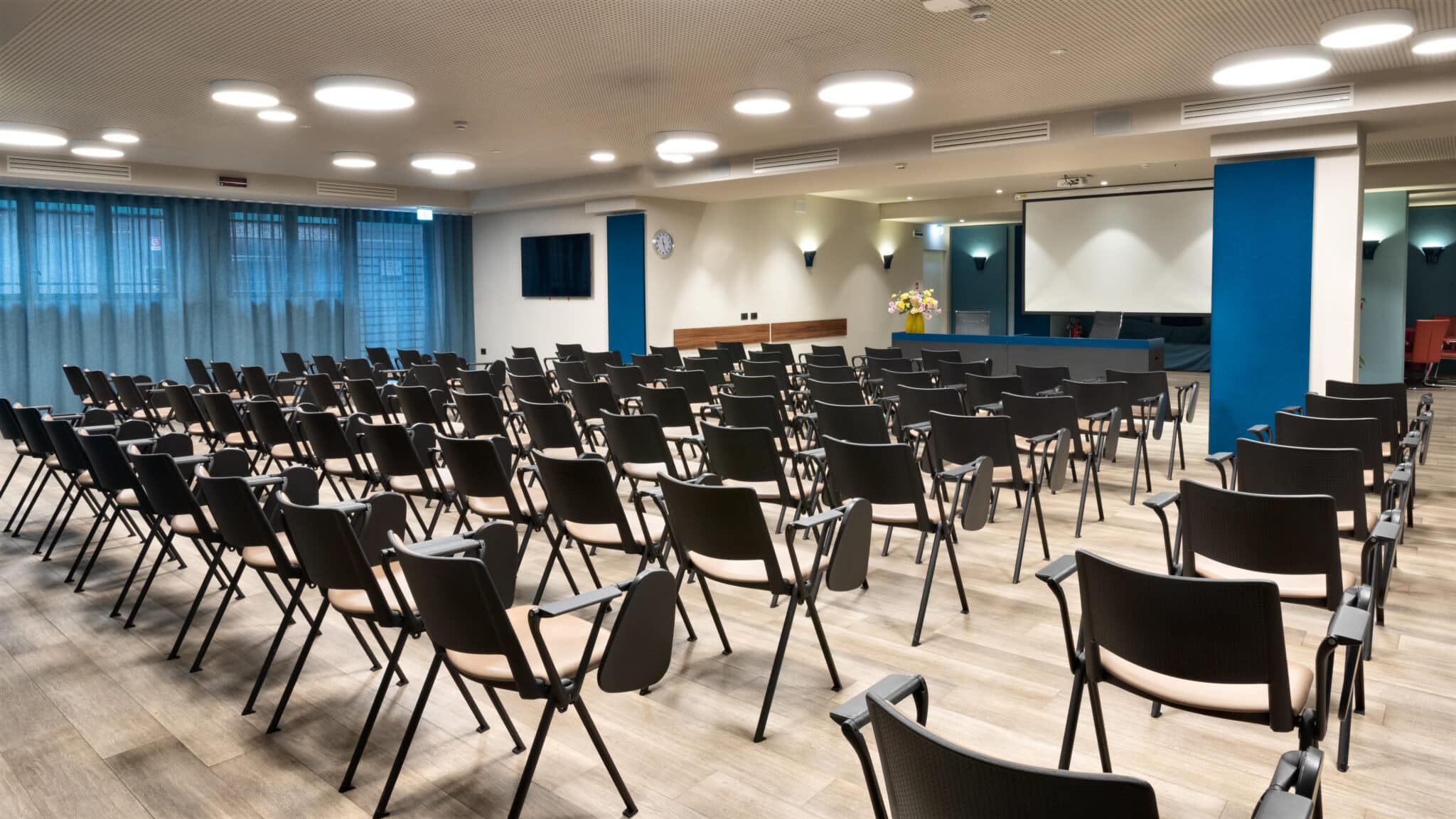 Le sale sono tutte dotate di videoproiettore, connessione Internet (linea veloce), impianto audio, schermo gigante, lavagna a fogli mobili, TV interattivo.