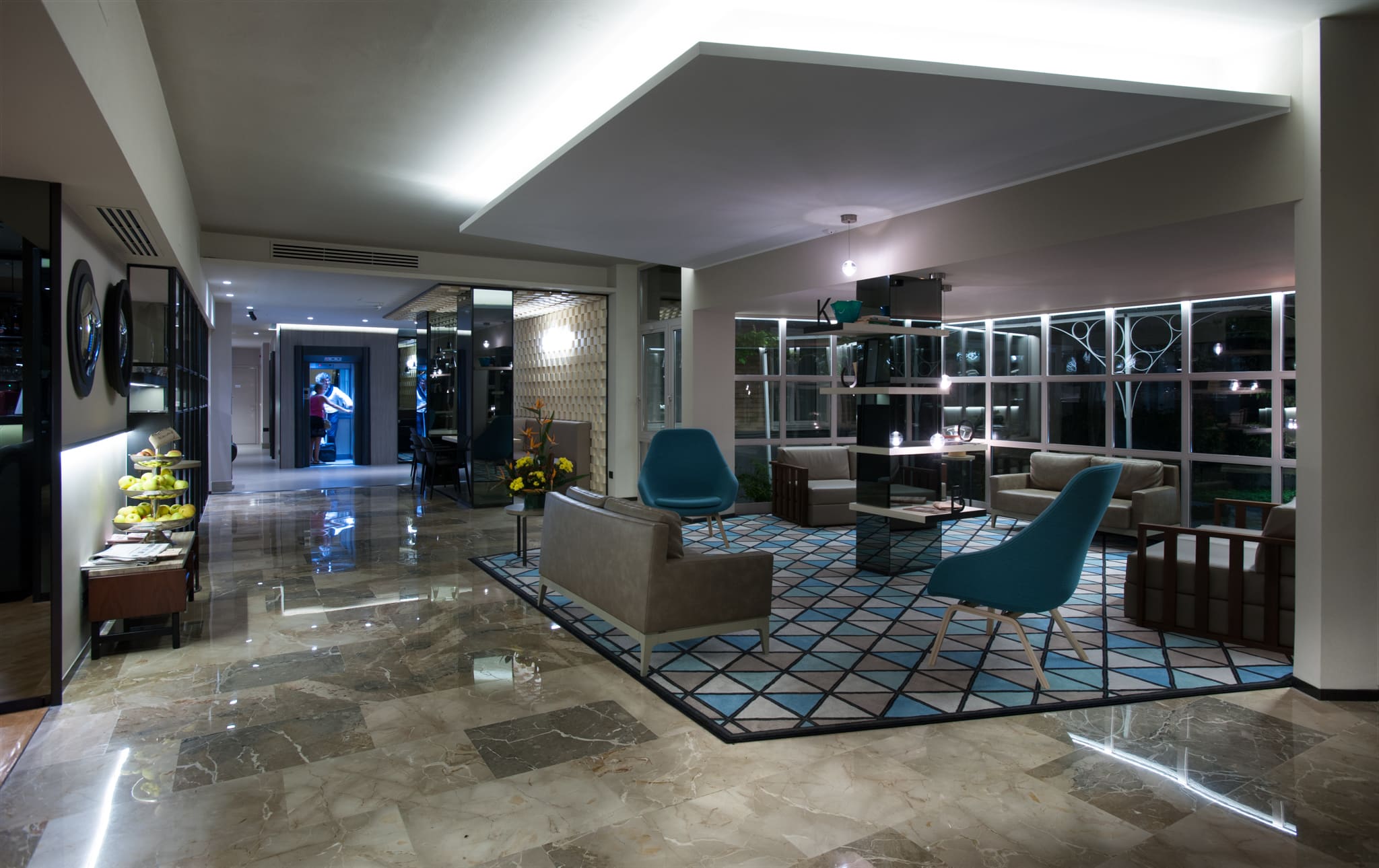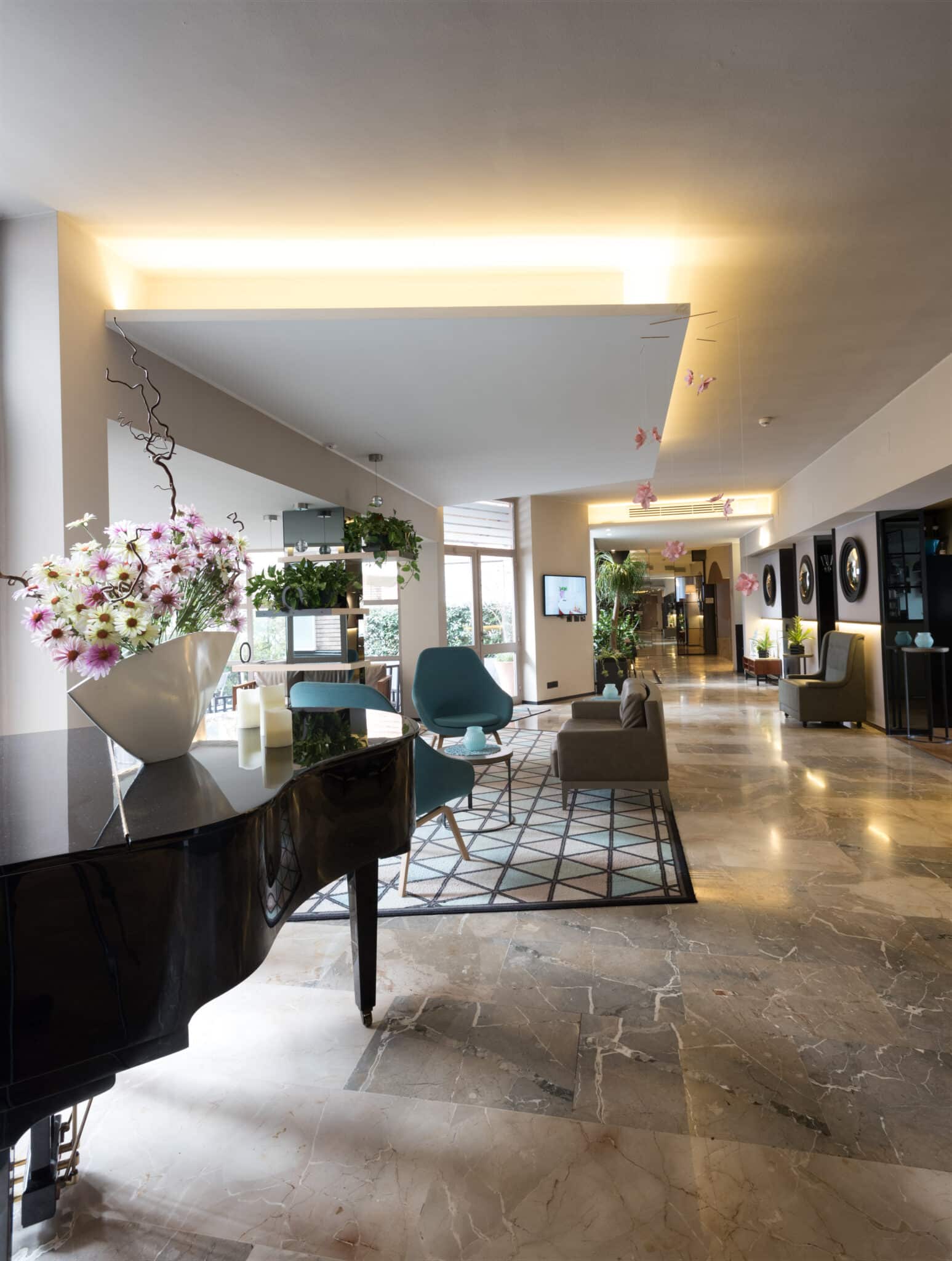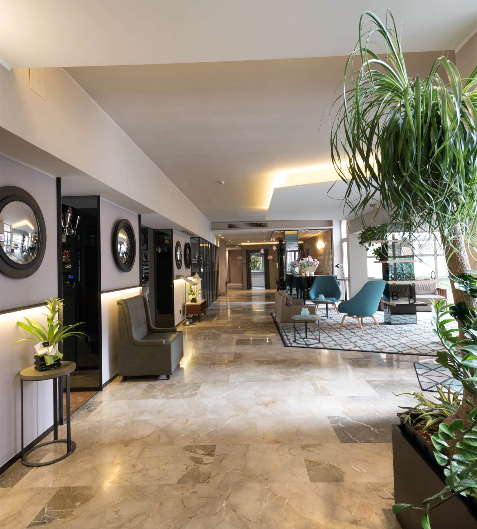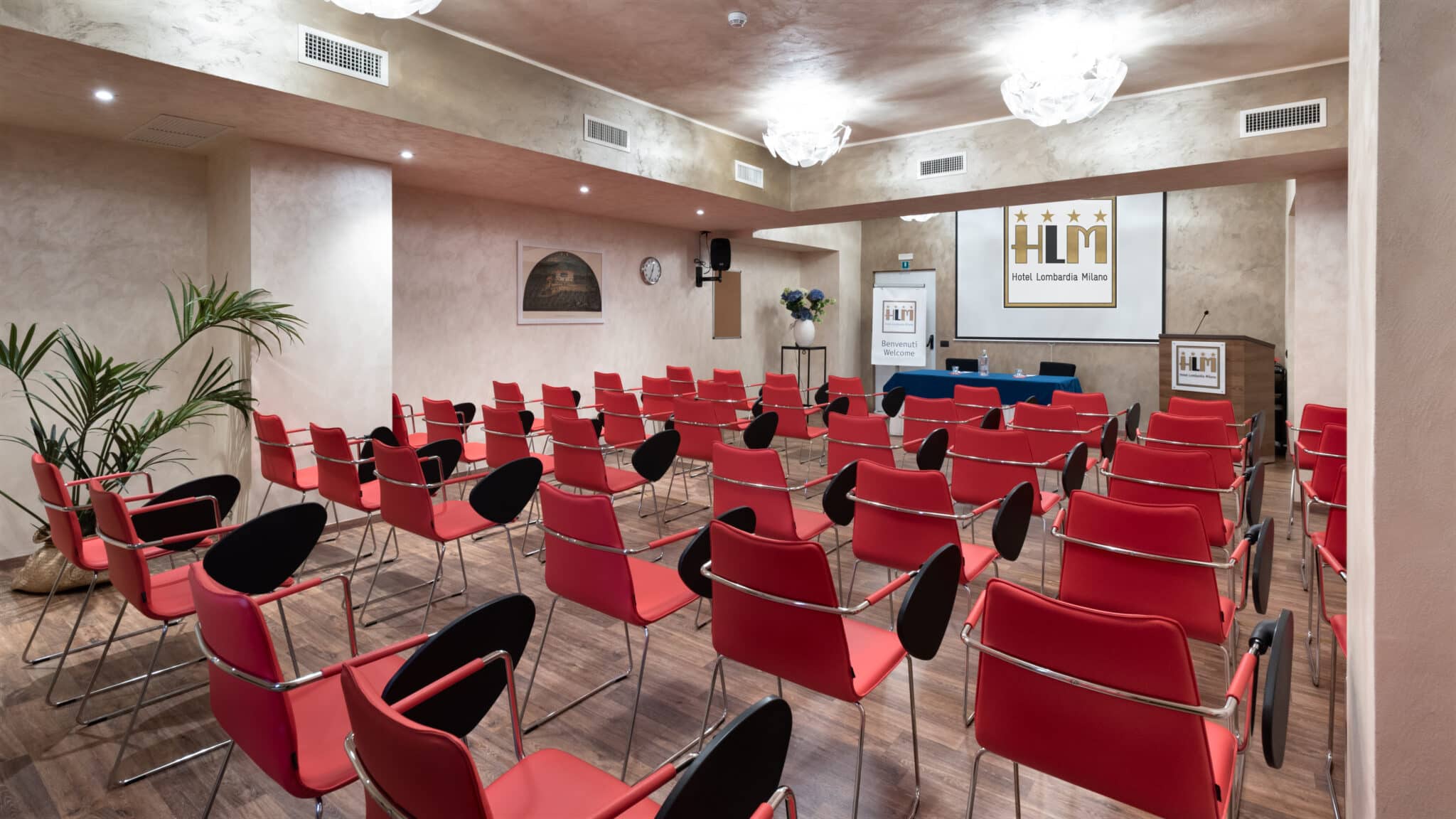 Contiene 85 camere, Bistrot, un ampio garage, n. 6 sale meeting per un totale di 380 posti a sedere.