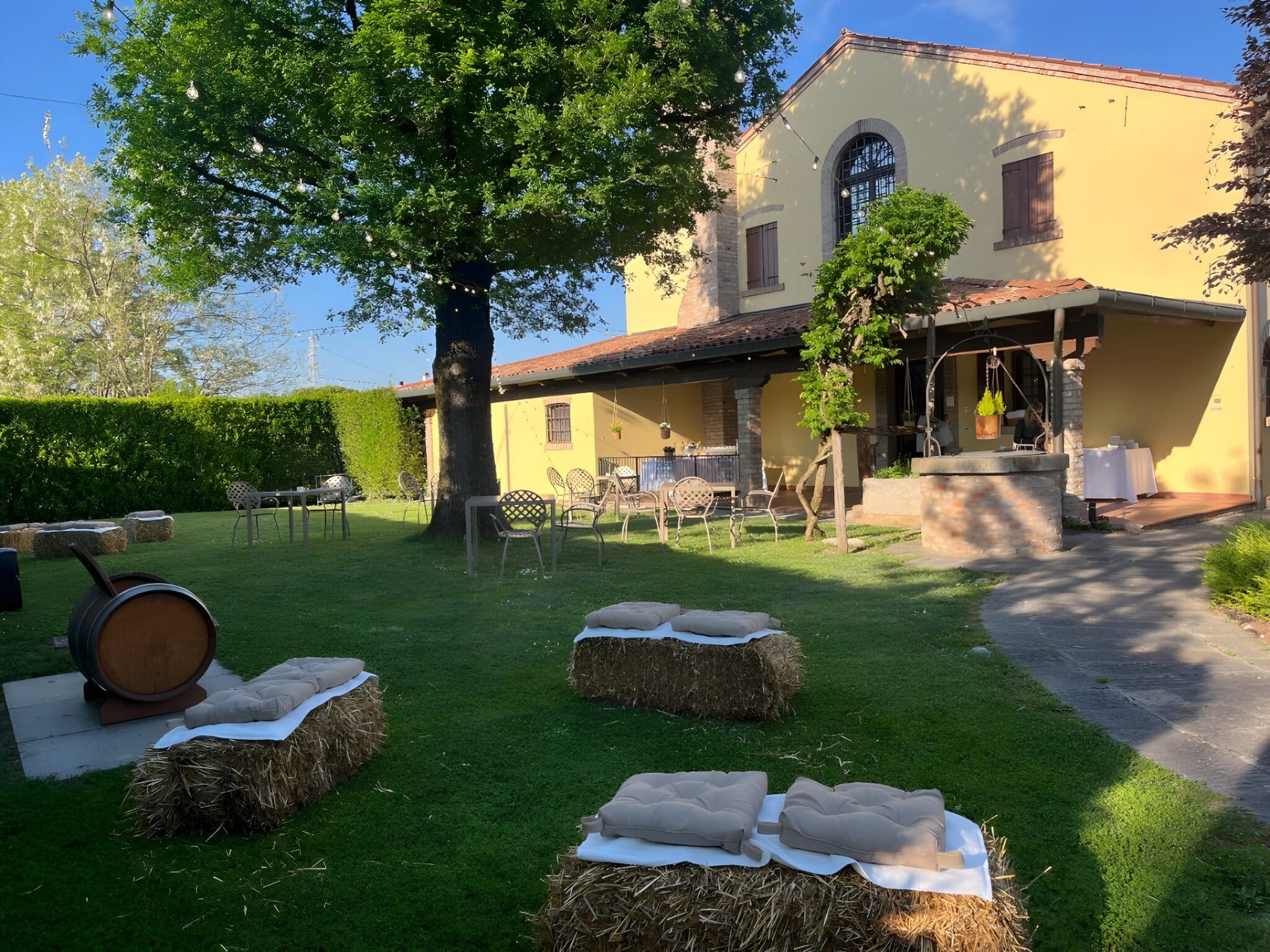 Le sale interne, il portico, la corte, il giardino in cui la nostra vite affonda le radici, il parco con le siepi ed i percorsi naturalistici offrono scenari ideali per poter organizzare il tuo evento in un ambiente costruito impiegando legno, luce, terra e tempo.