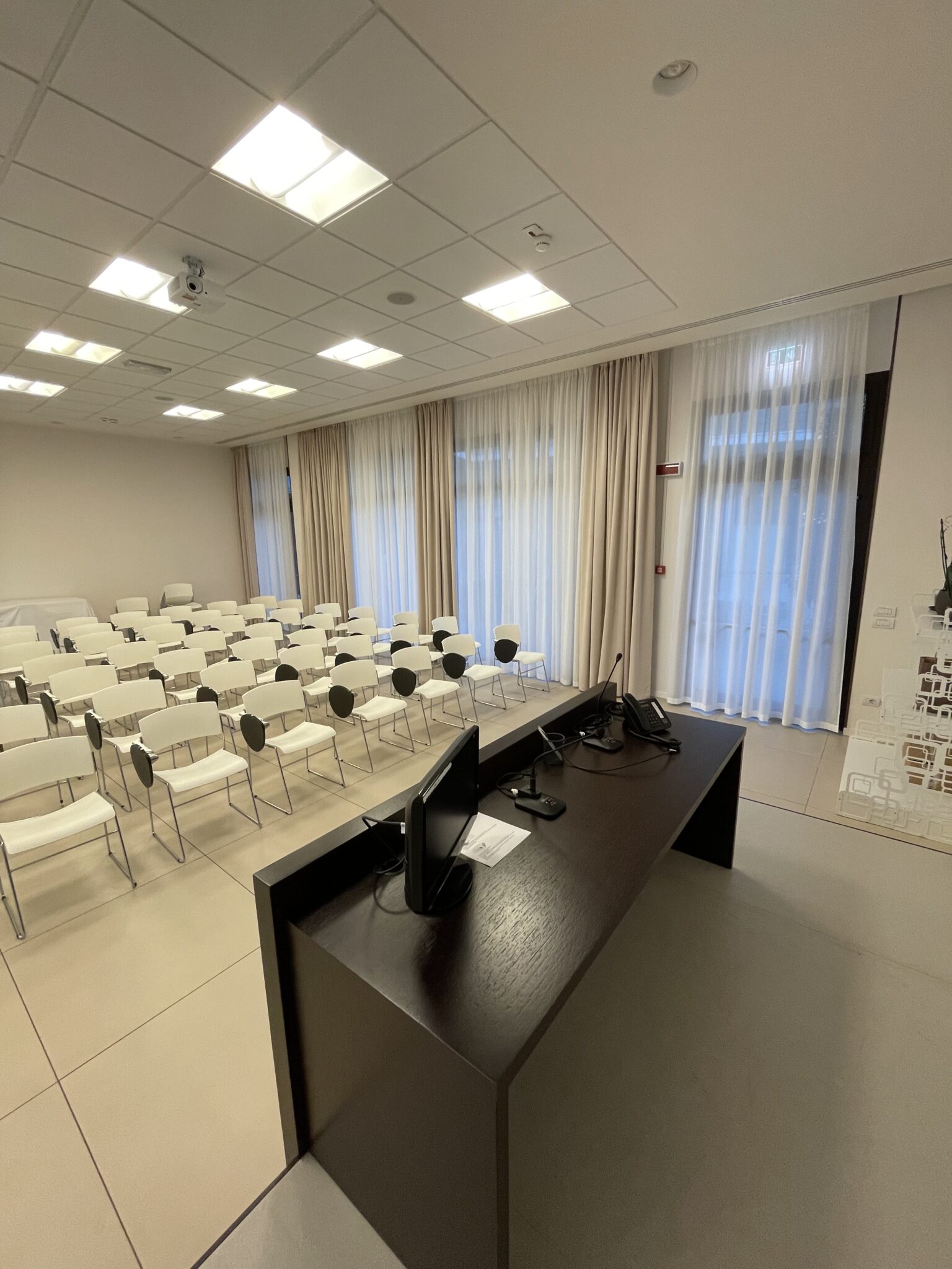 La sala meeting dell’hotel Mosaico Cesena è la soluzione ideale per riunioni di lavoro e presentazioni chiare, coinvolgenti e professionali, in un ambiente luminoso e moderno.