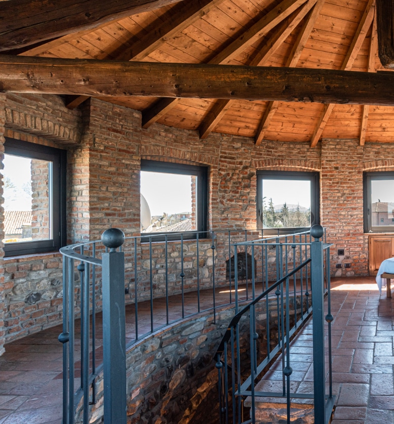 Porzione di antico castello risalente all'anno 1000, ristrutturato con recupero di materiali antichi, sala eventi di 70mq, grande cucina di 50mq, bagno e sala torre al piano terra, 3 camere con 2 posti letto ciascuna, di cui una suite di 50mq, due bagni, grande area comune e sala torre al piano primo. All'esterno grande cortile con portico di 65mq e grande giardino piantumato.