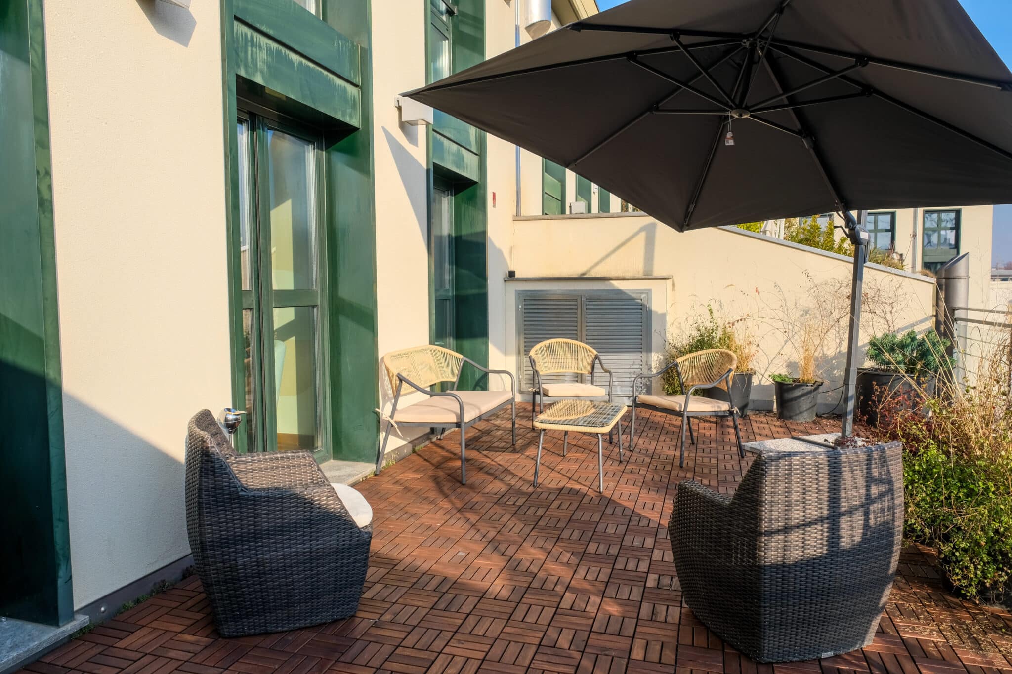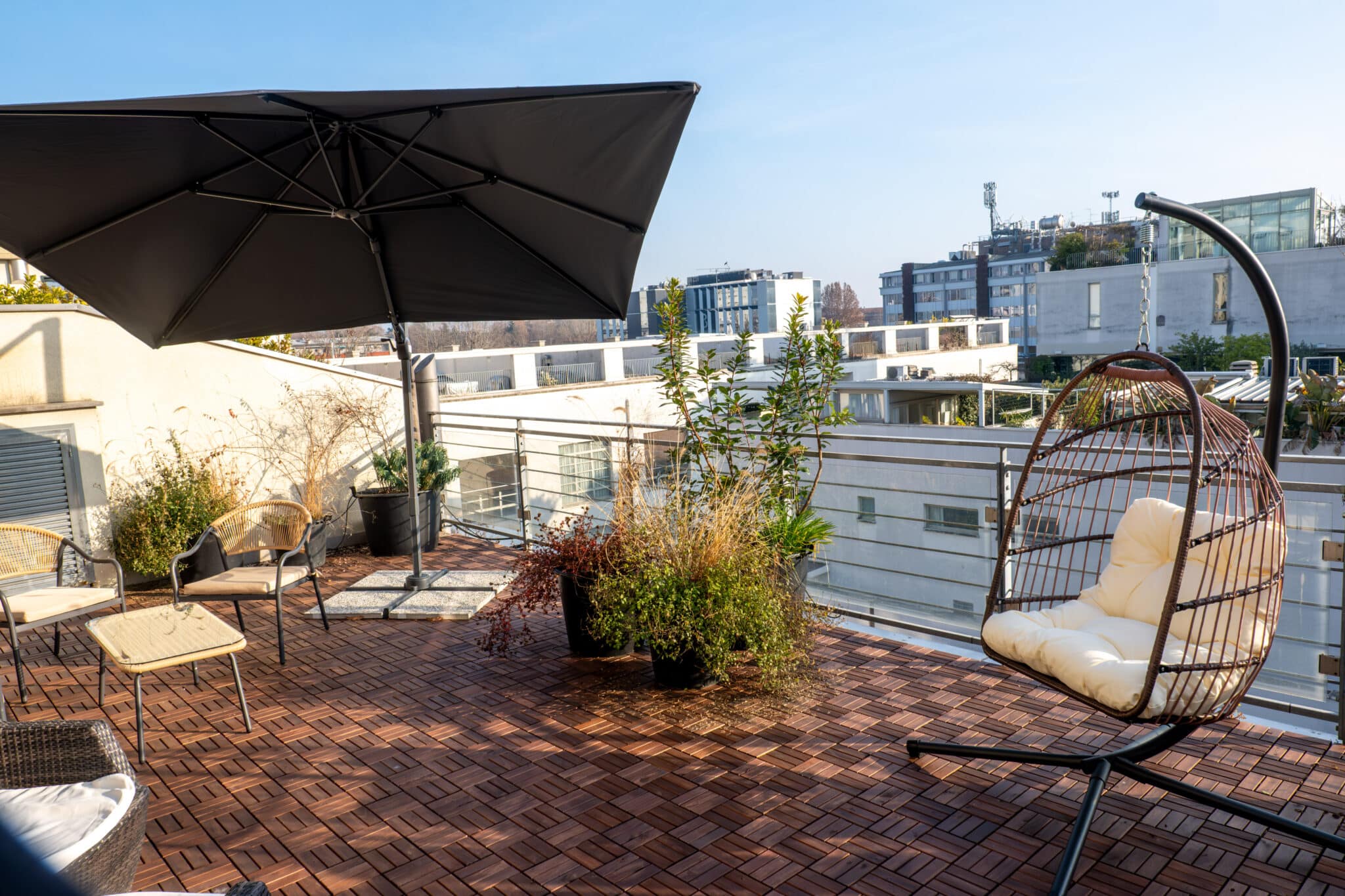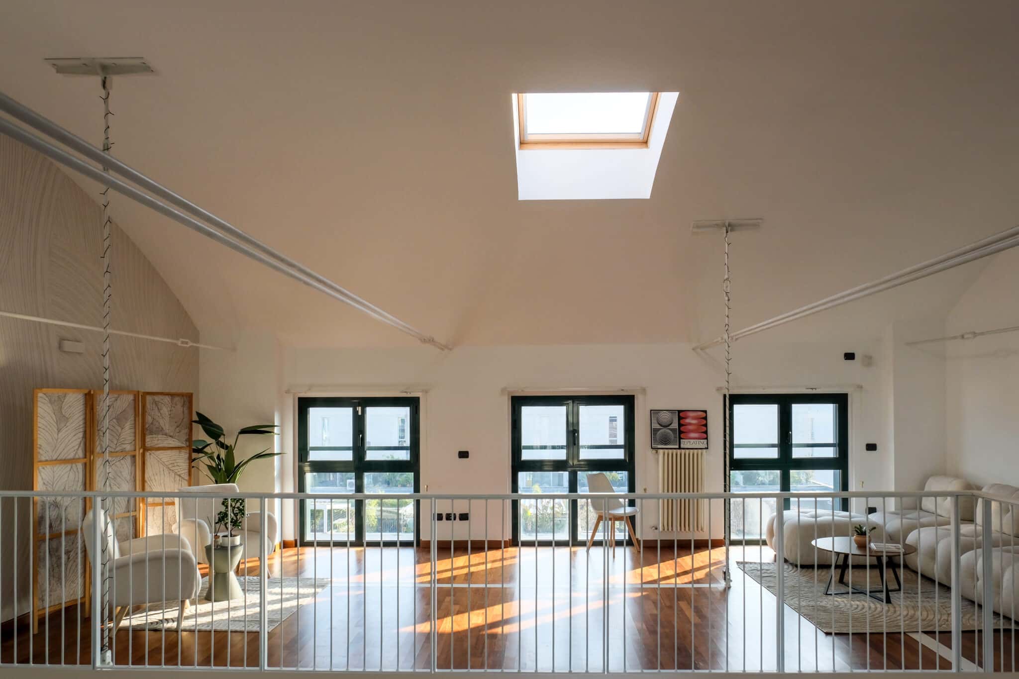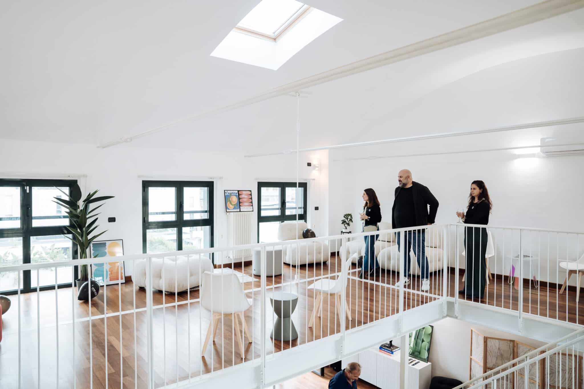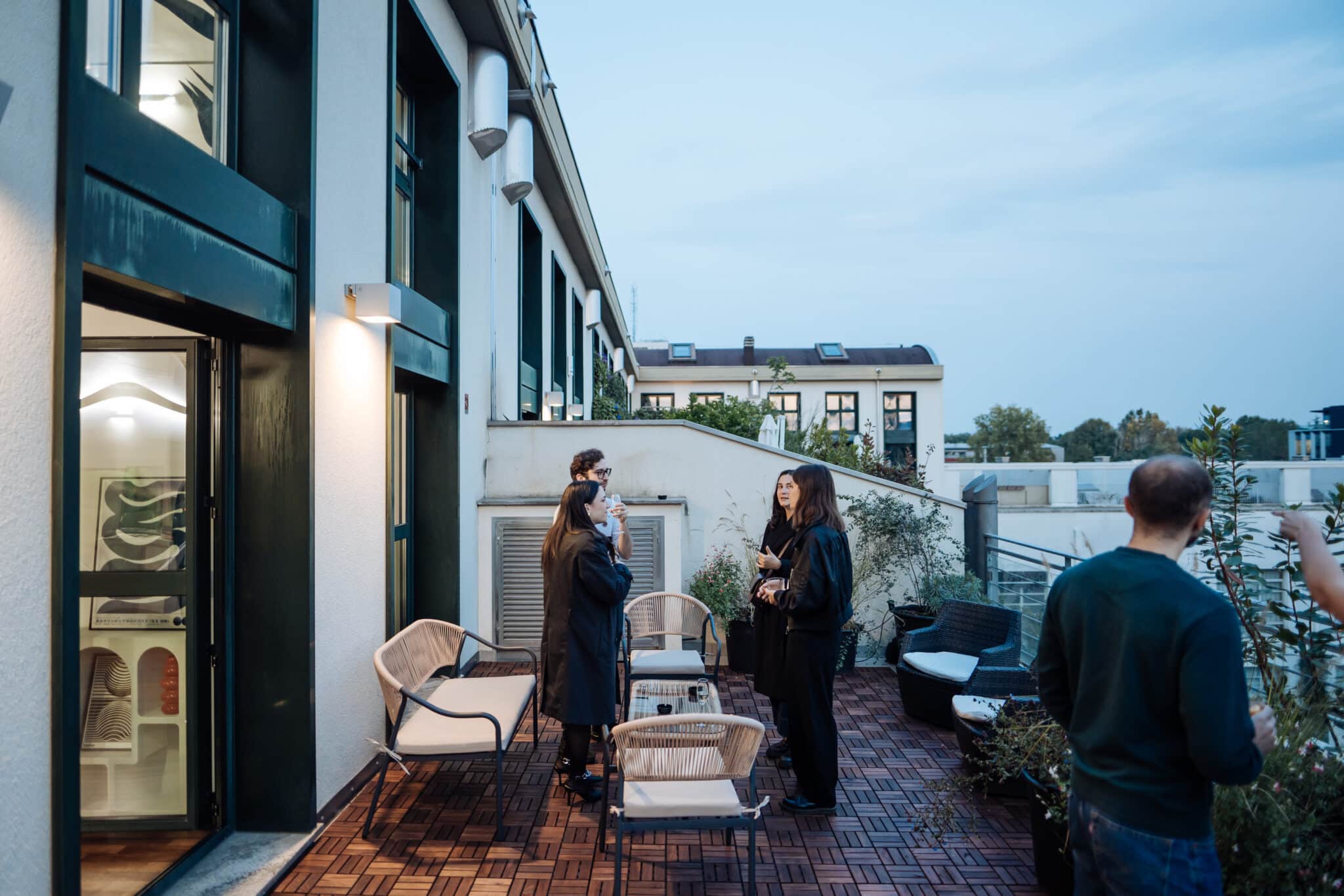 Il terrazzo panoramico di 32 mq aggiunge un livello in più all’esperienza: uno spazio aperto per networking, pause, momenti informali o contenuti outdoor.