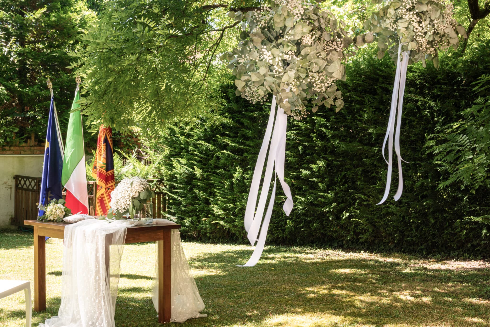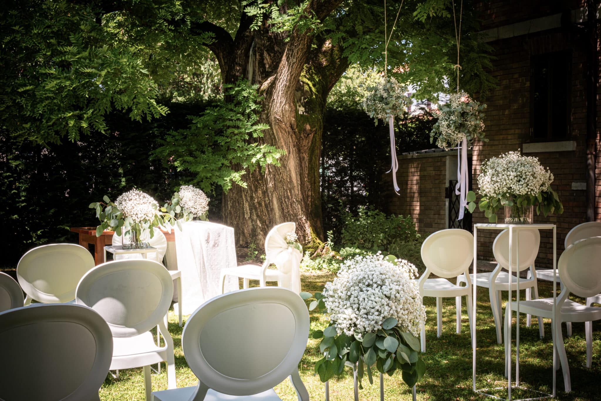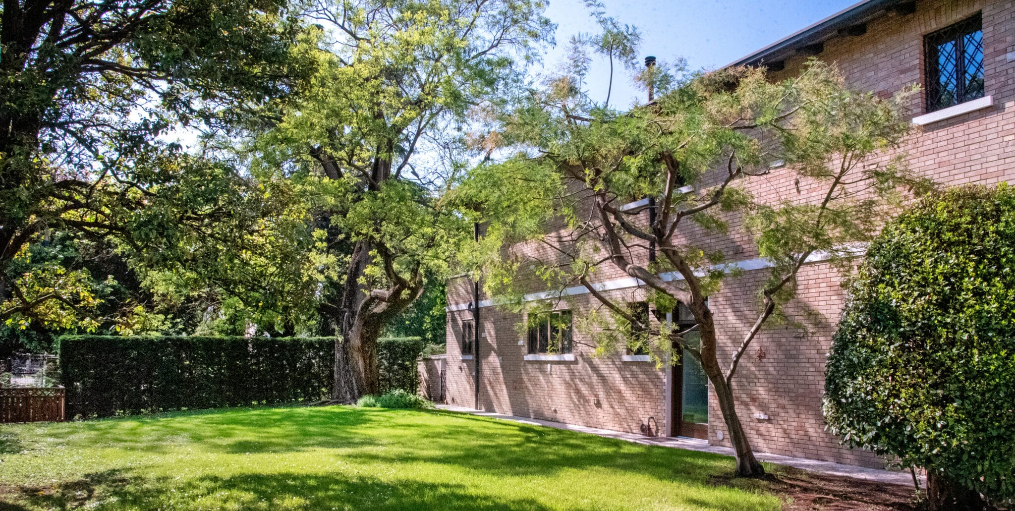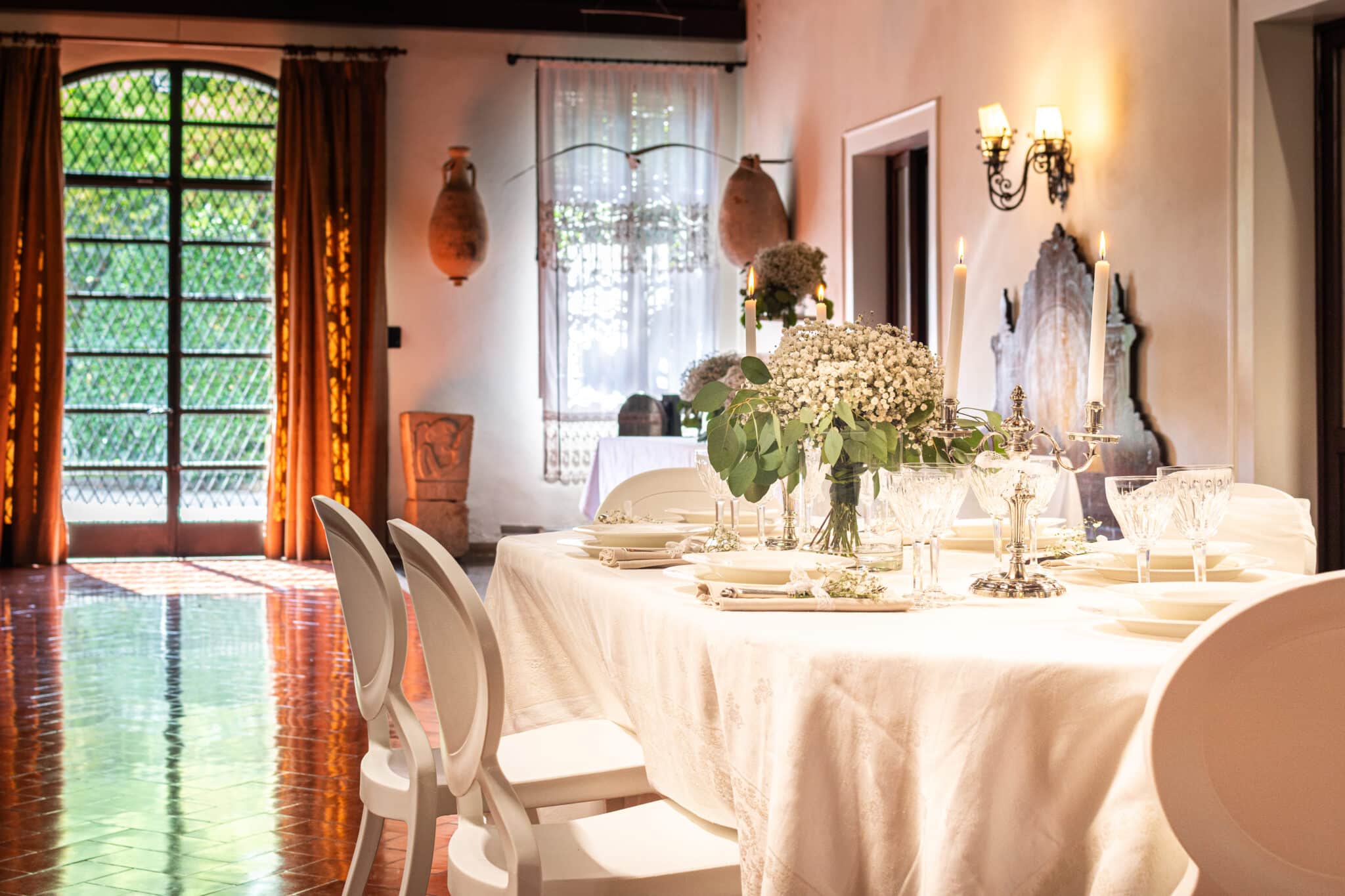 Ma è all'esterno che si svela tutta la sua magia. Il giardino, ricco di piante ombrose e incorniciato da un prato che si estende fino al fiume, offre uno scenario da sogno per ogni tipo di evento. Qui potrete celebrare una cerimonia conviviale, immersi in un'atmosfera raccolta e raffinata, o organizzare un meeting di lavoro che si distinguerà per importanza e prestigio.