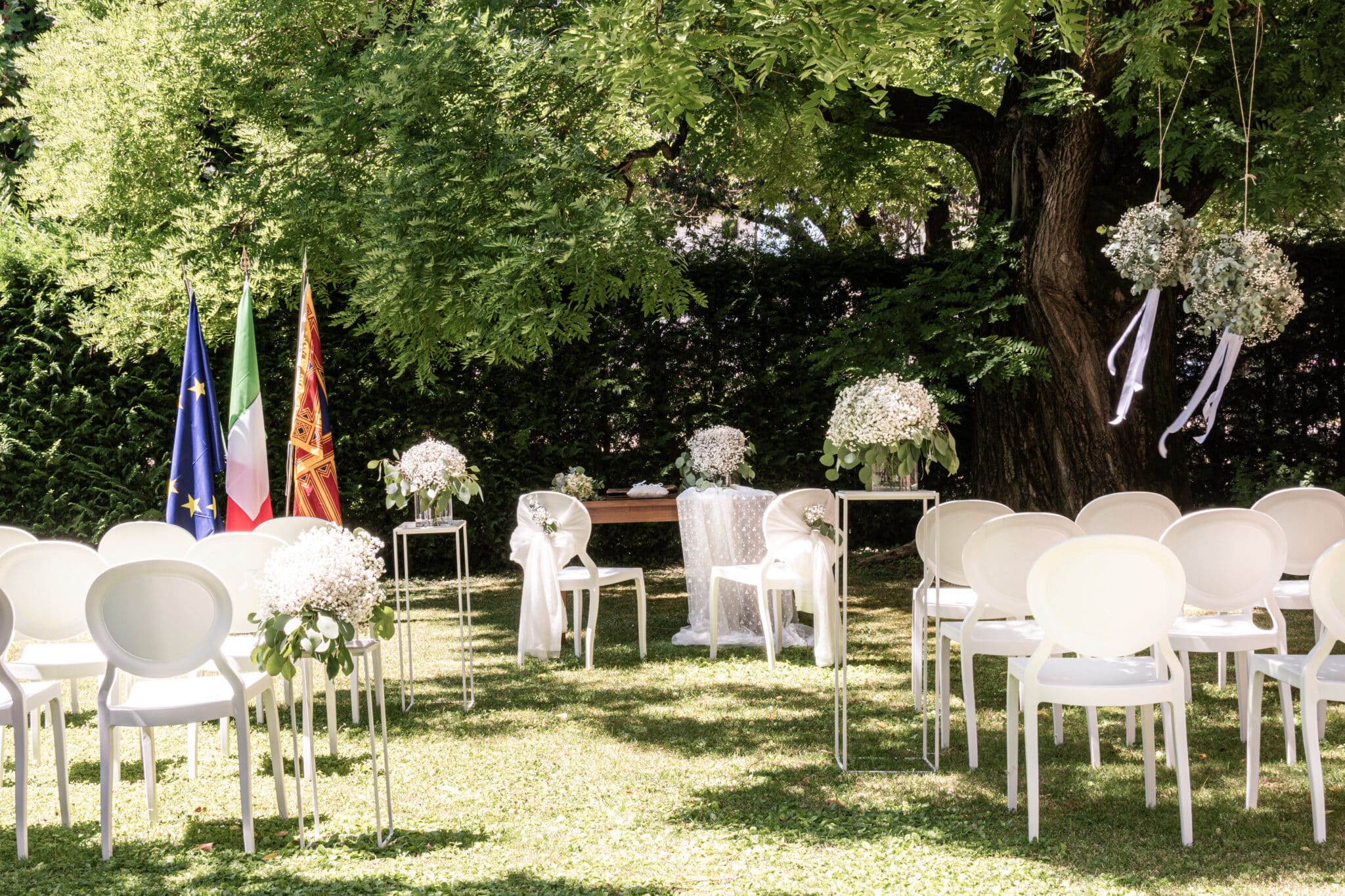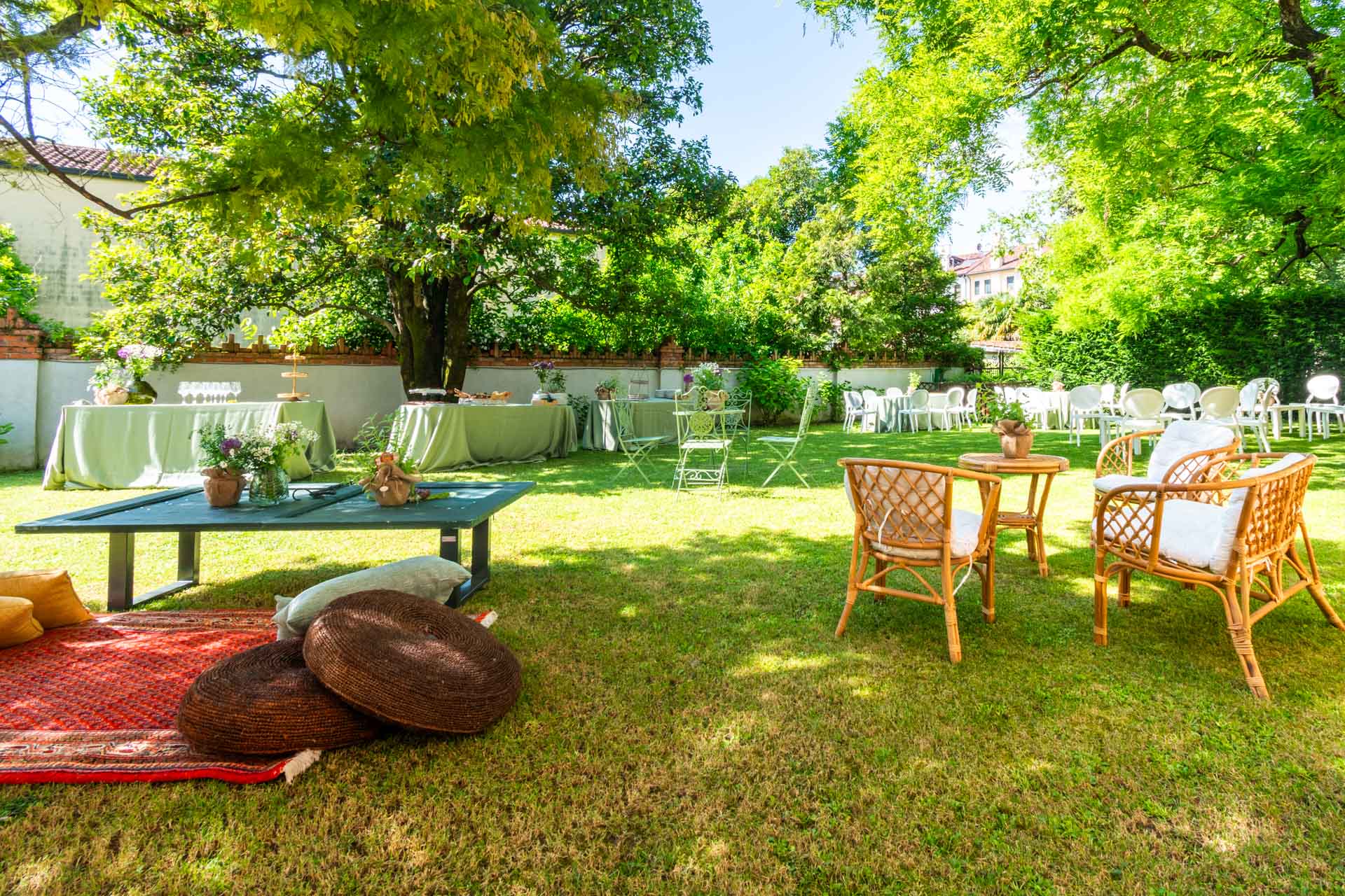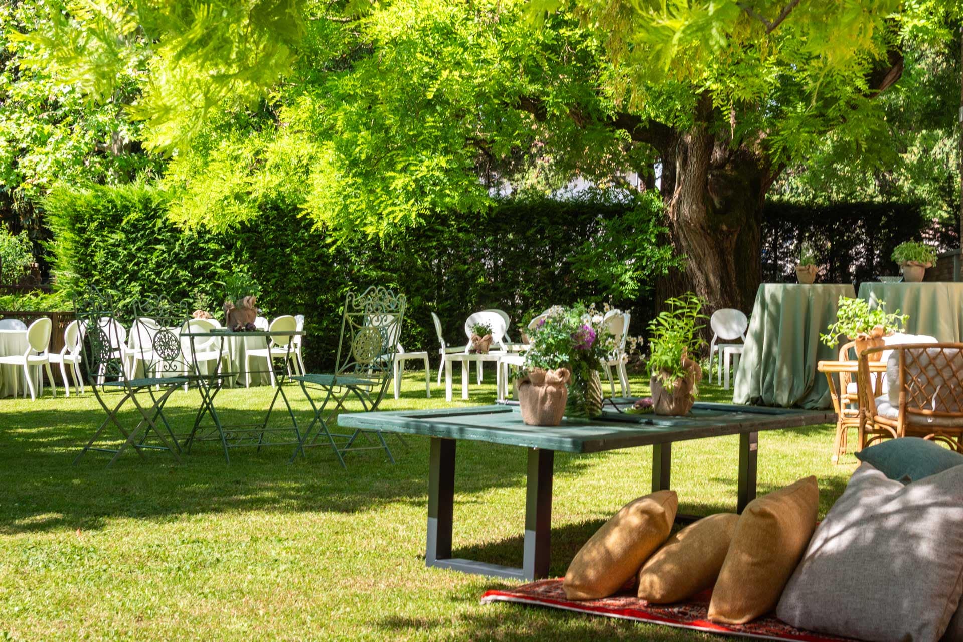 Palazzo e giardino costituiscono un insieme unico e versatile, in grado di adattarsi alle diverse esigenze degli ospiti e di incontrare i loro desideri.