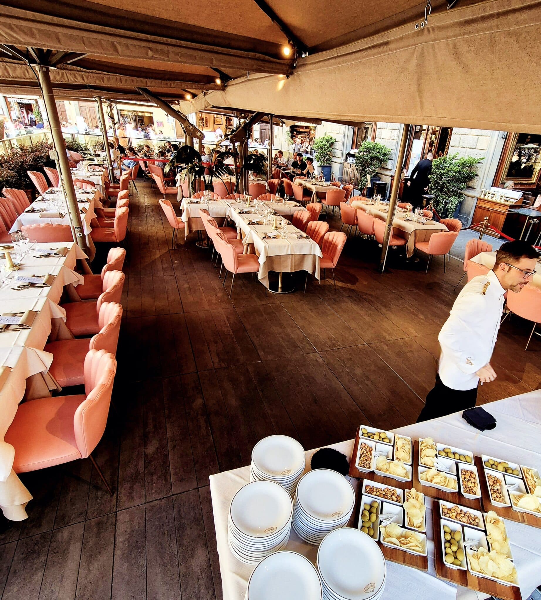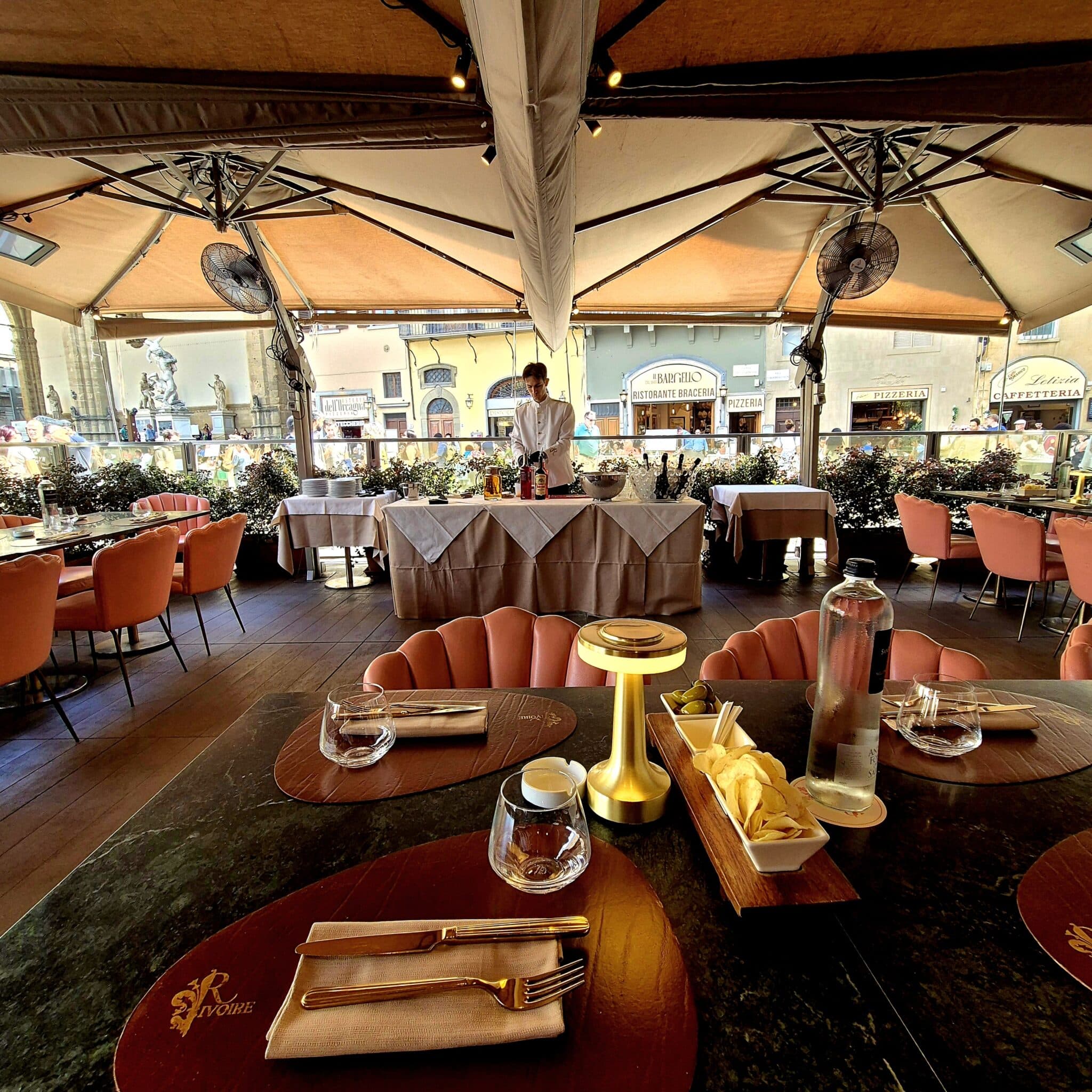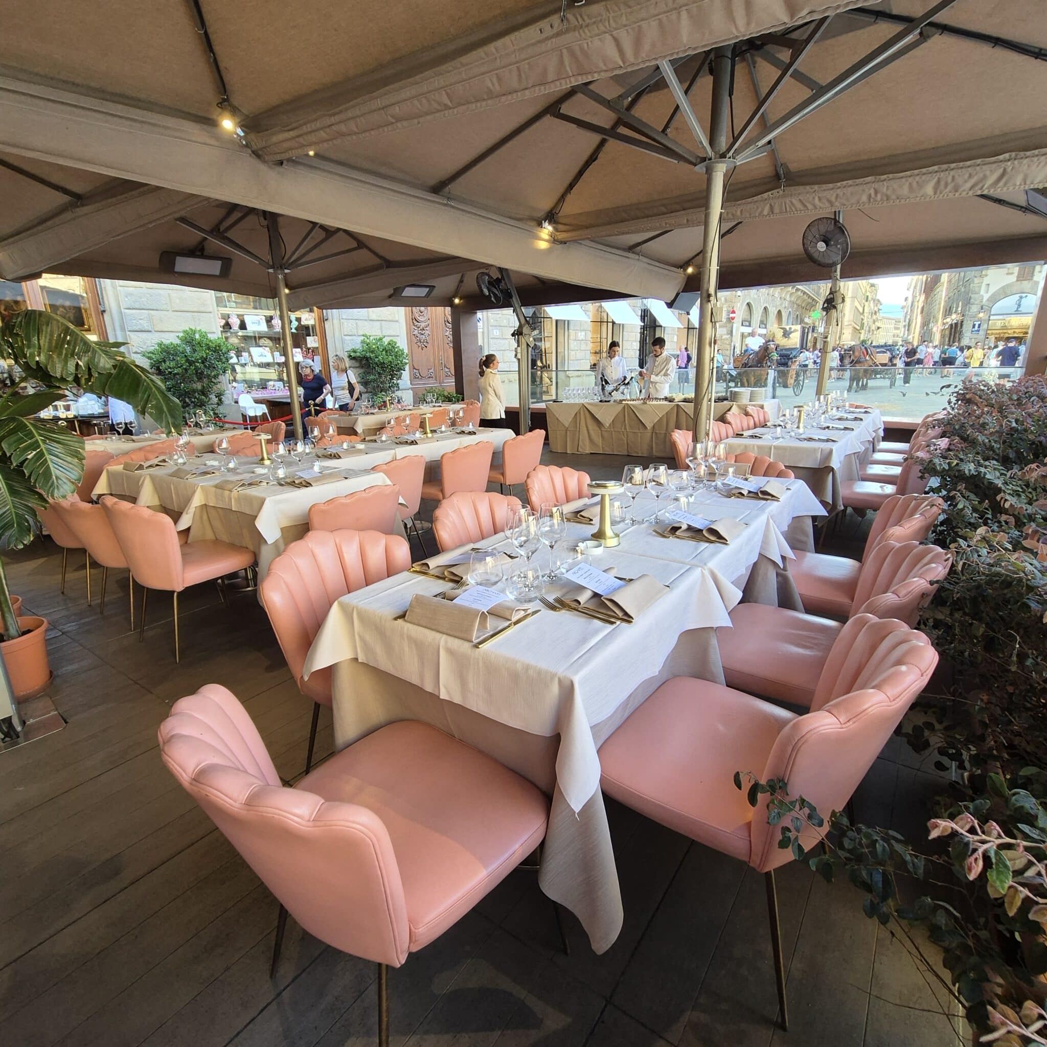 A rendere ancora più suggestiva la nostra location è il maestoso dehor affacciato direttamente su Piazza della Signoria, uno spazio iconico che permette di vivere Firenze in tutta la sua bellezza.