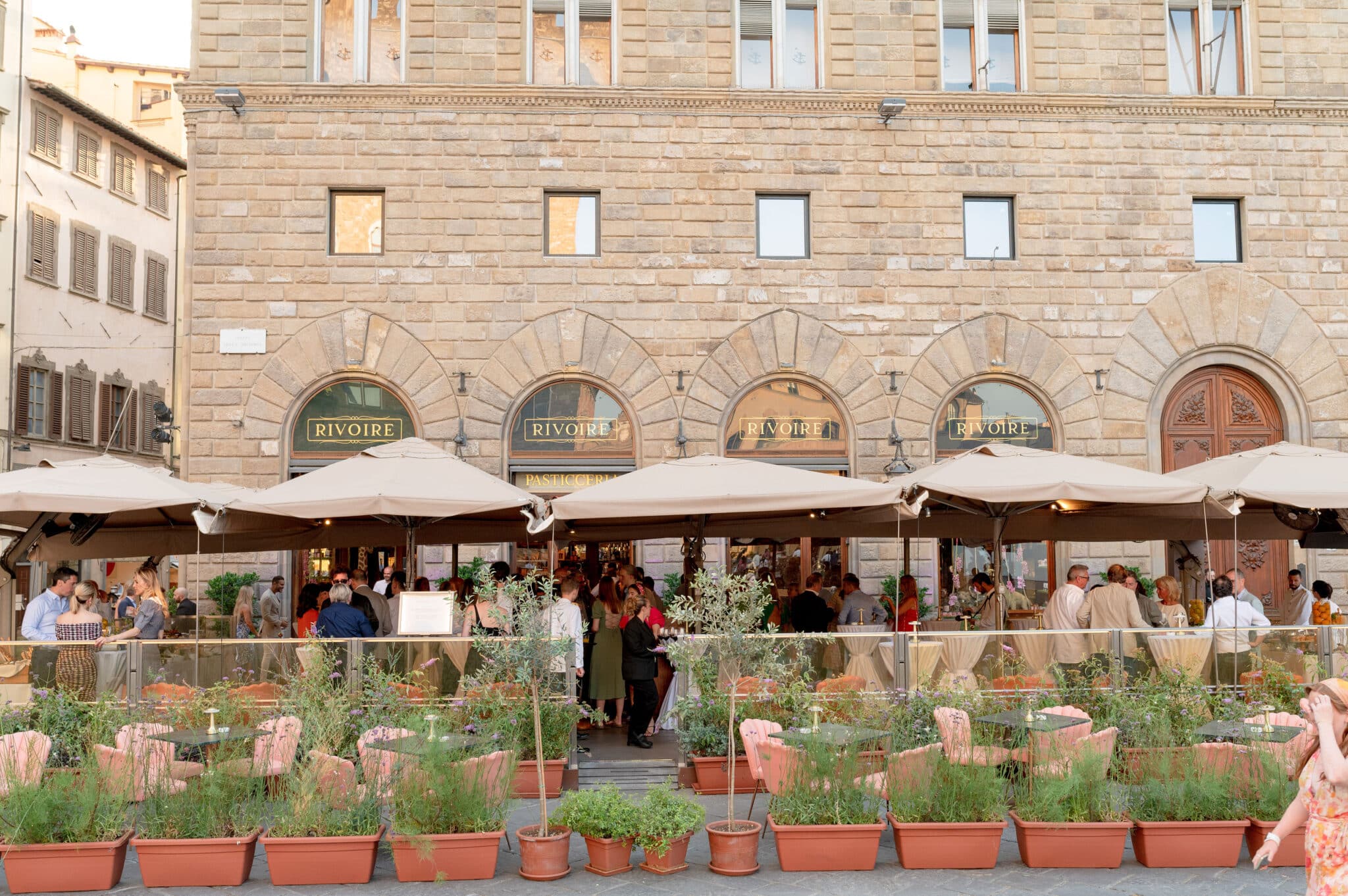 Piazza della Signoria la raffinata cornice di Rivoire, la storica cioccolateria nel cuore di Firenze, un locale ricercato ed elegante che si trasforma in un luogo di ritrovo esclusivo.