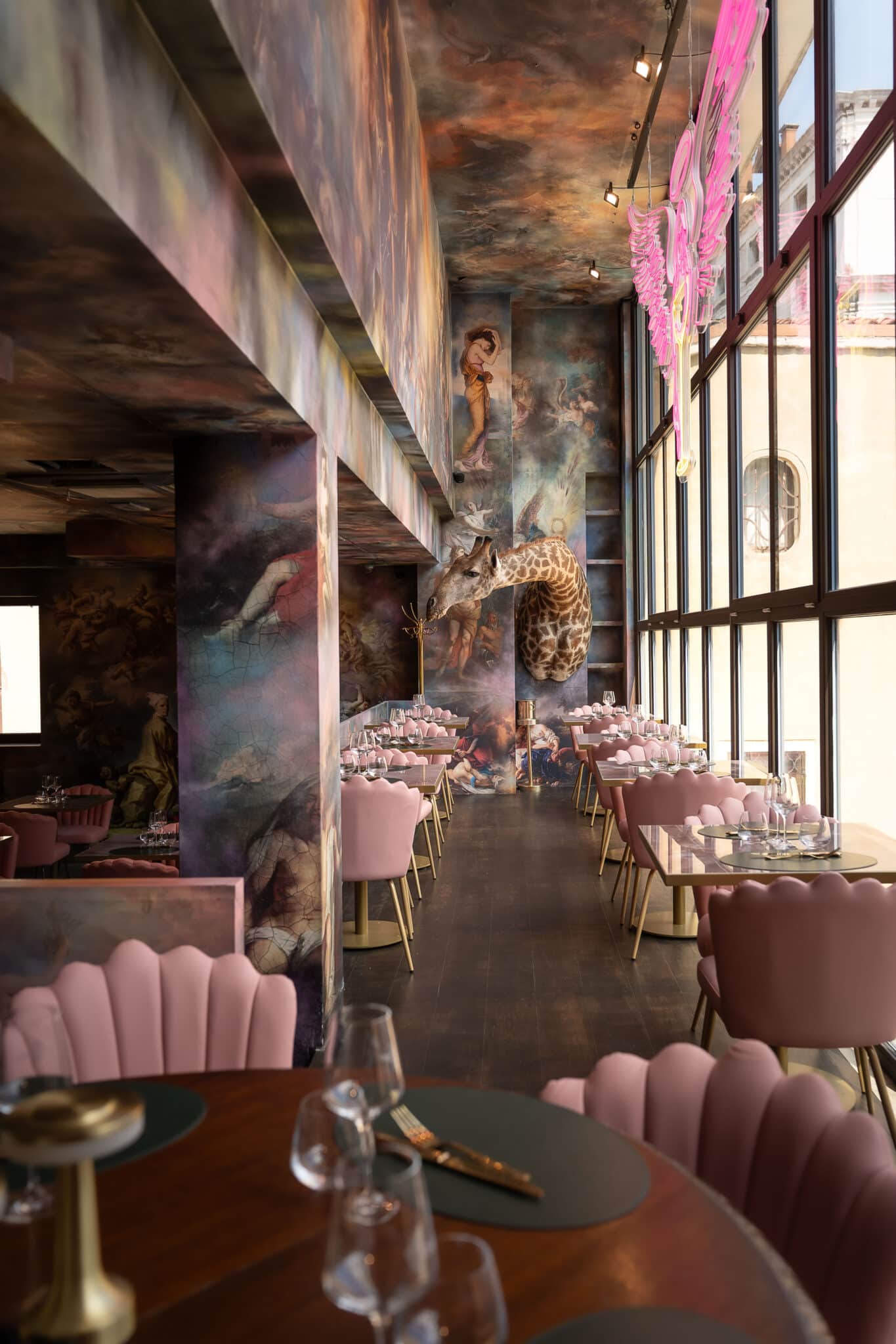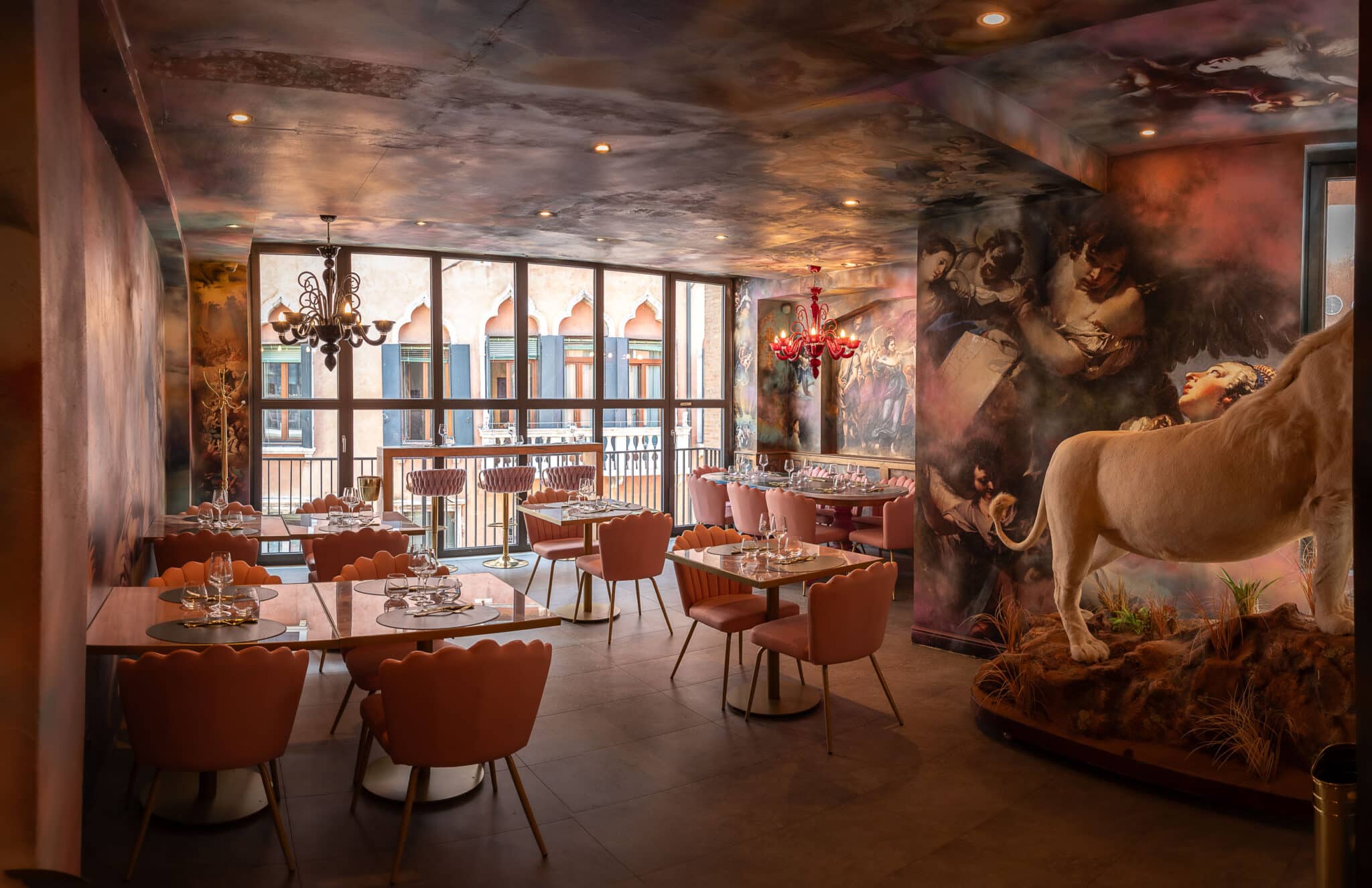Qui si entra in un mondo a parte, un esperienza sensoriale tra onice rosa e animali selvatici, lampadari di Murano e graffiti ispirati al Rinascimento.