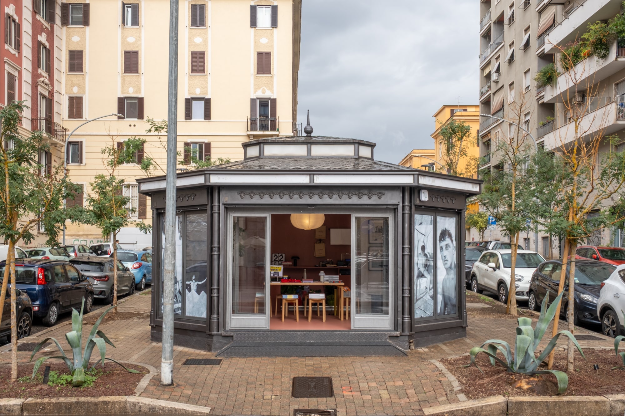 Un progetto di riqualifica e diversificazione di un edicola chiosco, situato nel centro di Roma, nel quartiere San Giovanni. 20 mq pieni di luce, un luogo versatile e pensato per essere conviviale.