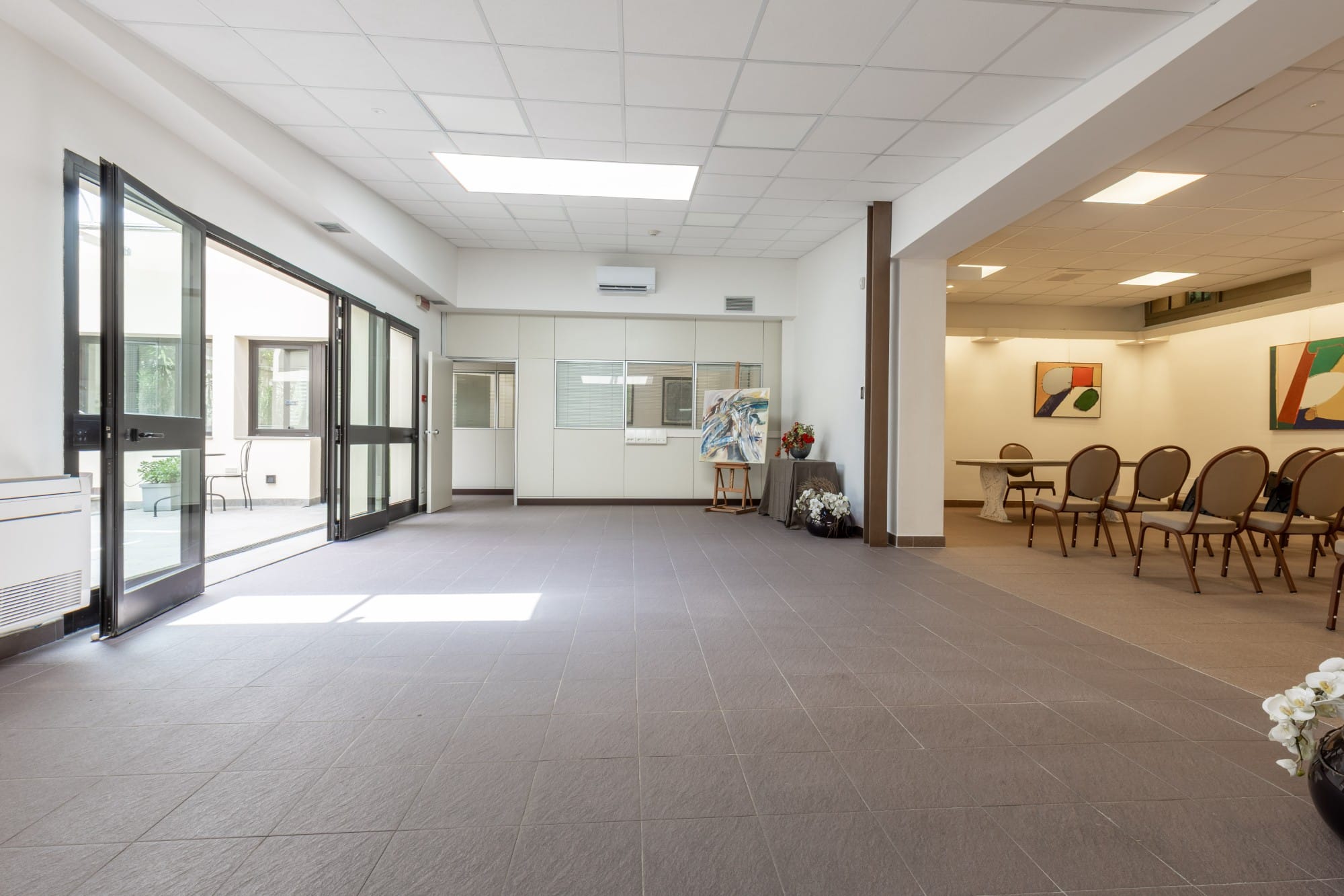 Con i suoi 200 mq, offre una sala principale luminosa, due sale riunioni e un accogliente foyer, oltre a un cortile privato ideale per coffee break e momenti di networking. Gli ambienti, curati nei dettagli e arricchiti da arredi di design, creano un’atmosfera contemporanea e distintiva.
