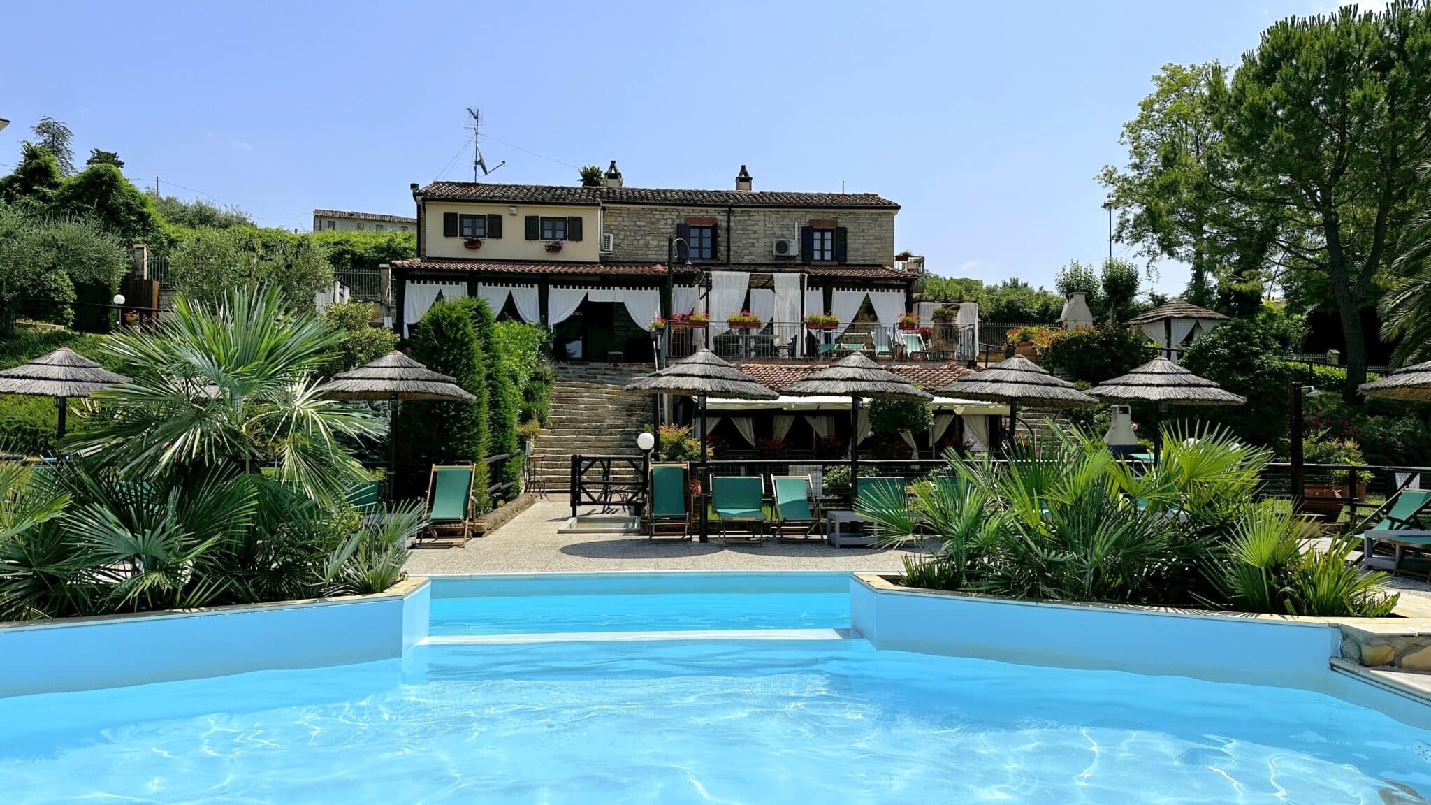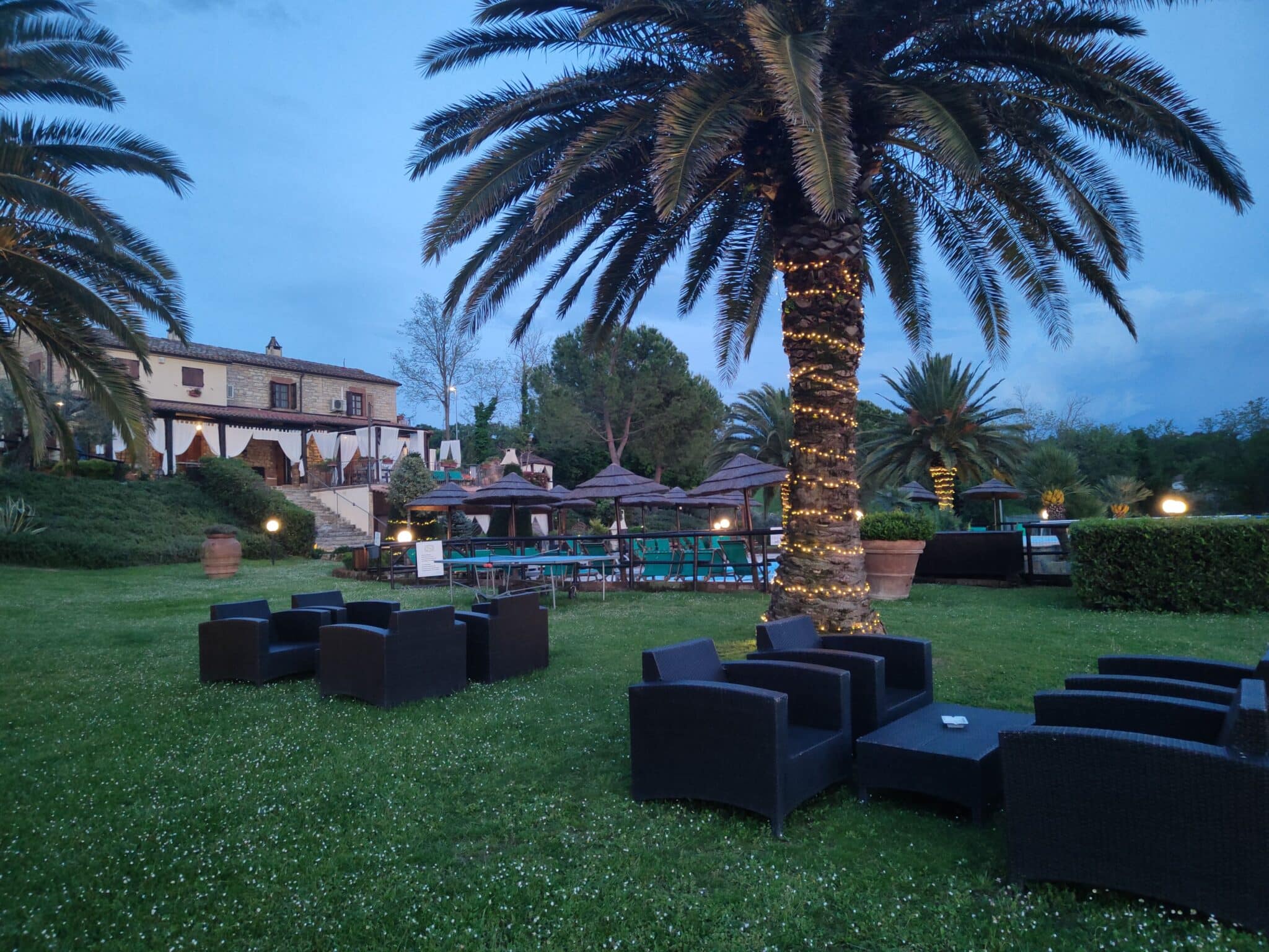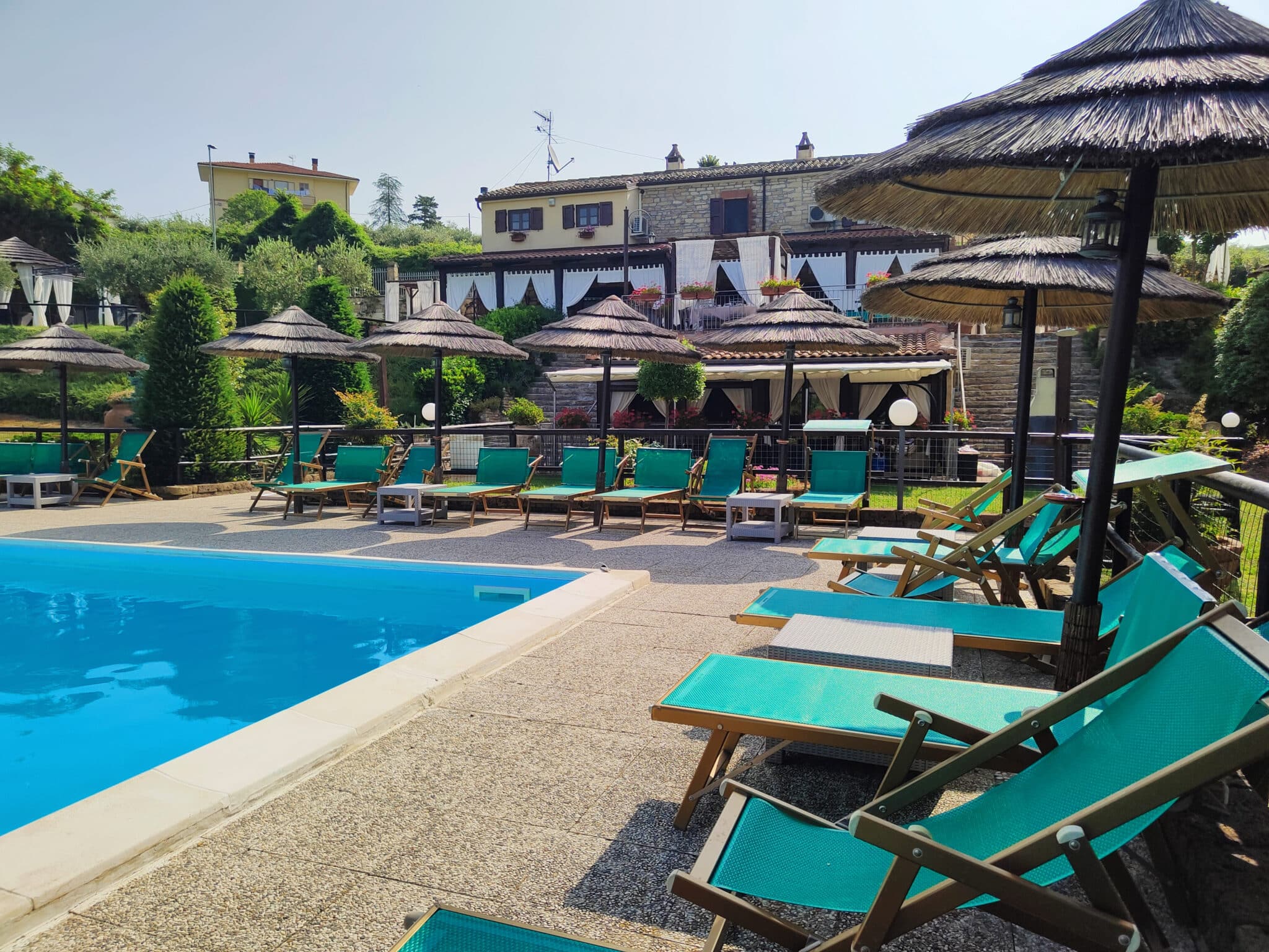 Spazi dedicati per picnic, piscina, campo da tennis, palestra, con la presenza della cantina Bruscia.