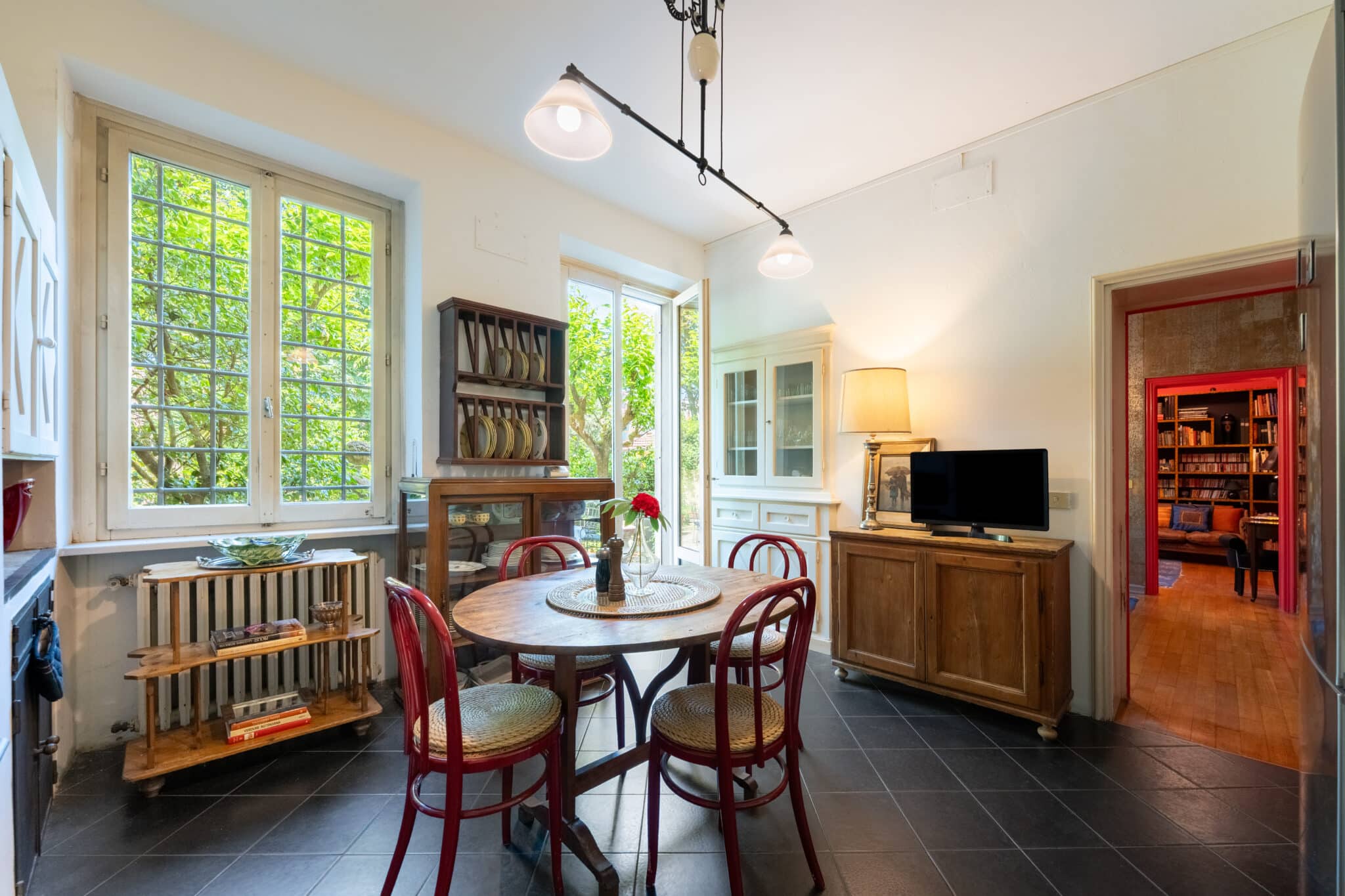 Al piano terra si trova l’incredibile zona giorno, composta principalmente da ingresso, ampio soggiorno, sala da pranzo e cucina, tutte affacciate sul giardino.