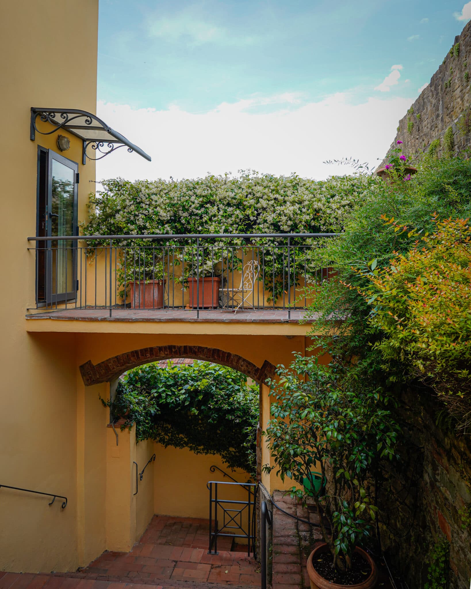 Protetta dalle mura medioevali della città, dove sorge Porta San Miniato, la proprietà è appoggiata al fianco della collina, ai piedi del Forte Belvedere e a dieci minuti da Ponte Vecchio.