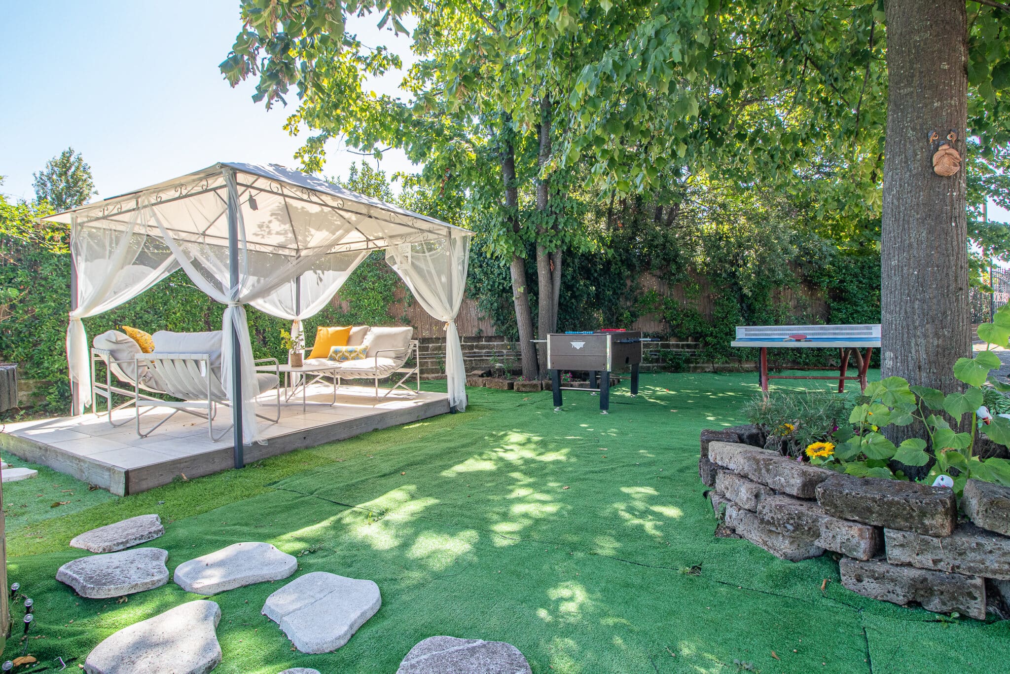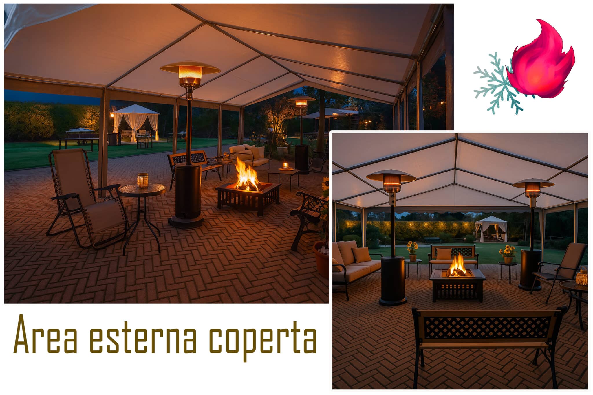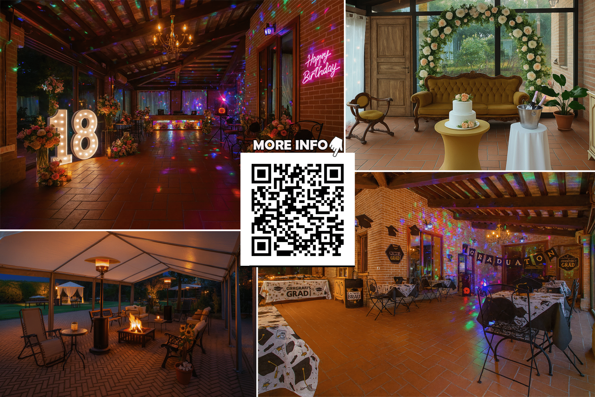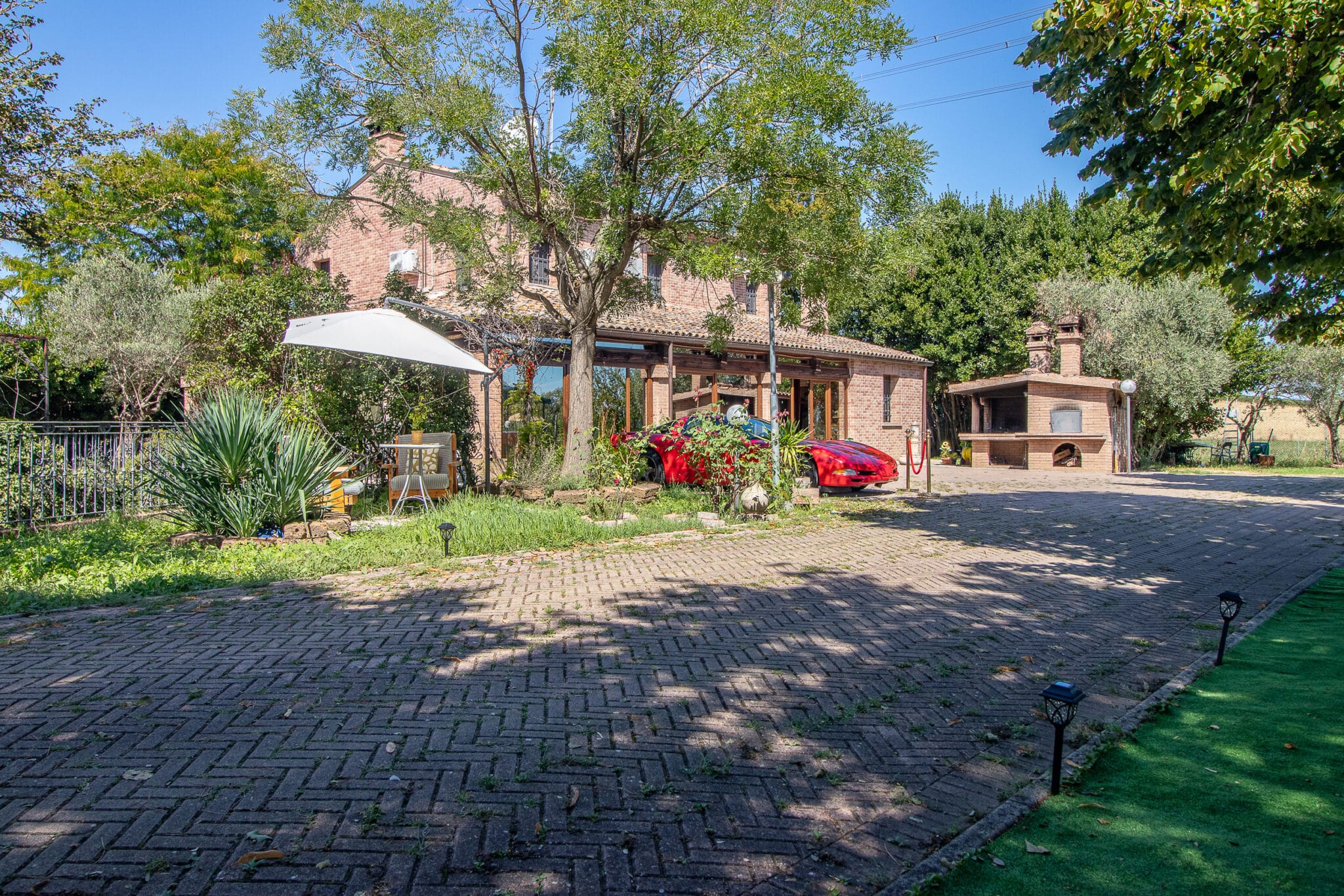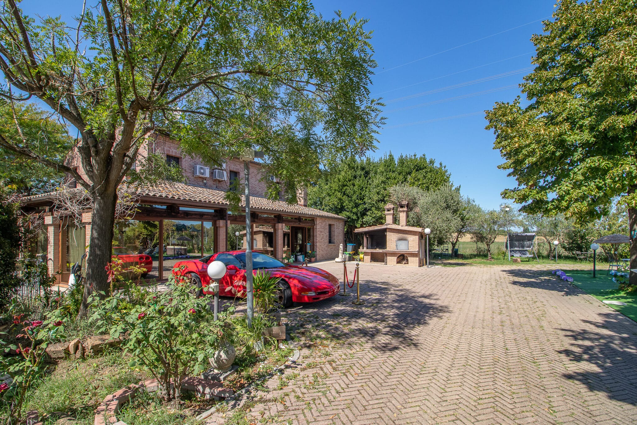 Gli ampi spazi esterni con piscina, idromassaggio e portico attrezzato consentono di organizzare ricevimenti all’aperto in un’atmosfera raffinata, mentre gli interni della villa, curati nei minimi dettagli, garantiscono ambienti accoglienti anche per eventi in ogni stagione.