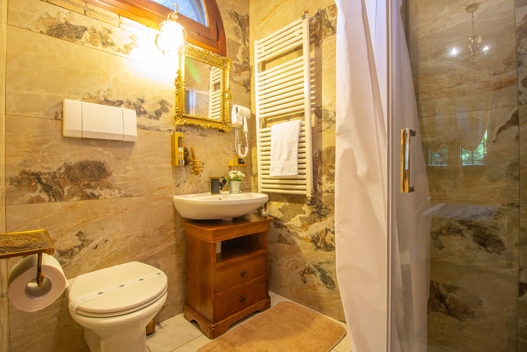 La struttura dispone di suite eleganti per il pernottamento degli ospiti e di spazi polifunzionali adattabili a cene di gala, cerimonie, team building o presentazioni aziendali.