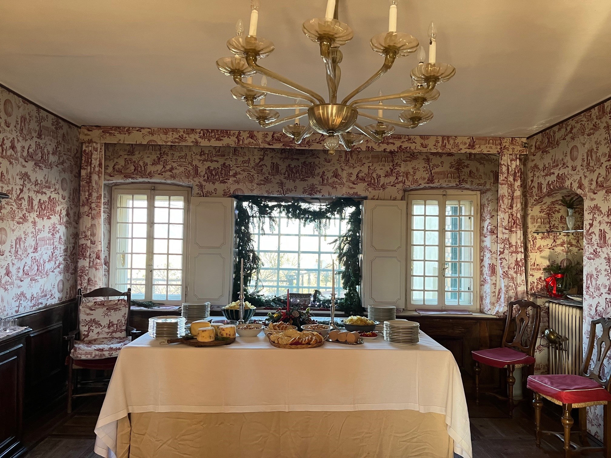 Al piano terra, si offrono per eventi: una grande cucina (40 metri quadrati), una sala da pranzo di grande charme (27 metri quadrati), il salotto verde (24 metri quadrati), il salotto affrescato (38 metri quadrati) dalla pittrice Marta Sammartini e la biblioteca (35 metri quadrati), nonché il portico (78mq) che apre sull'ampio giardino all’italiana (lato sud) ed il belvedere (lato nord).