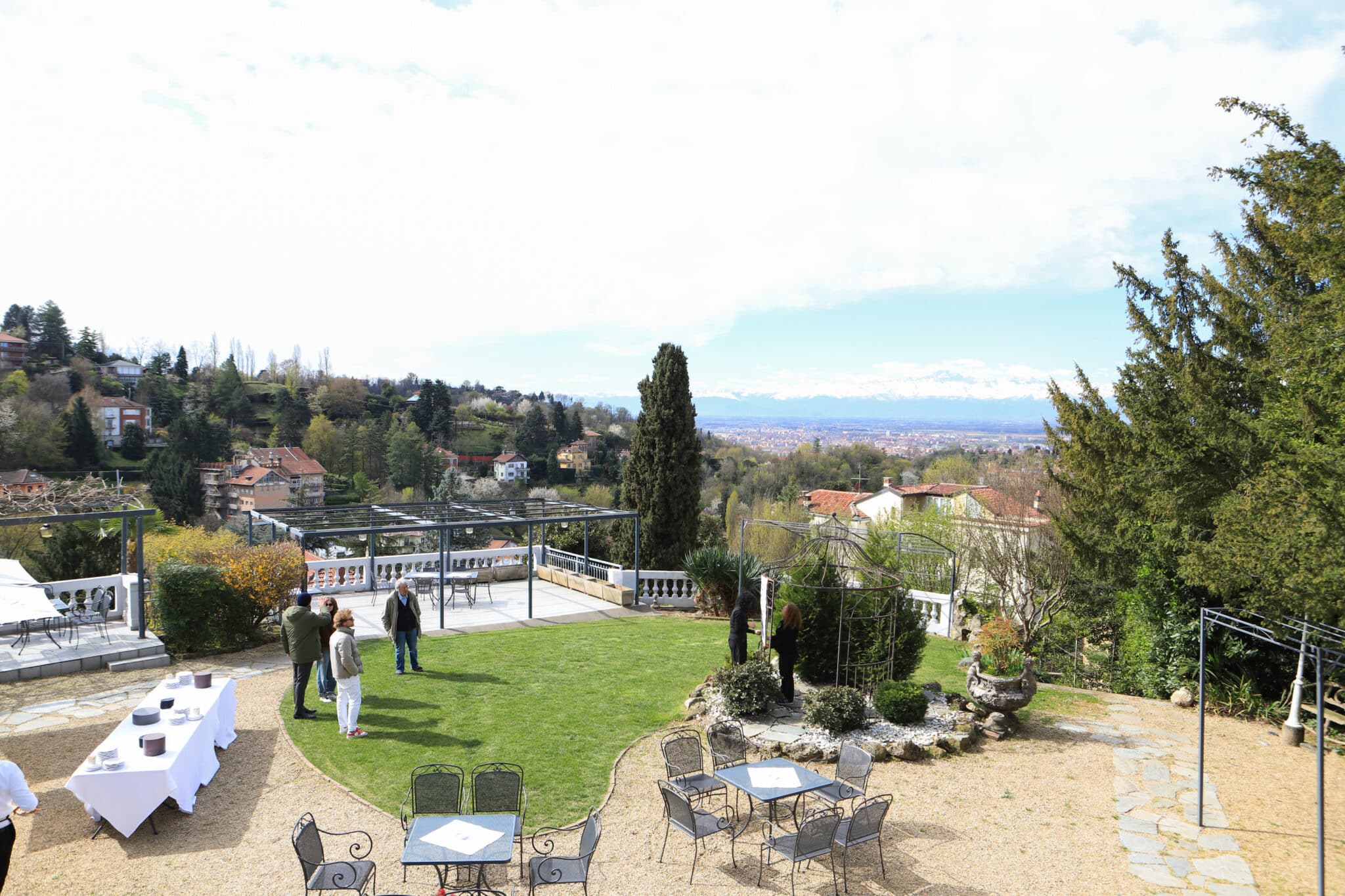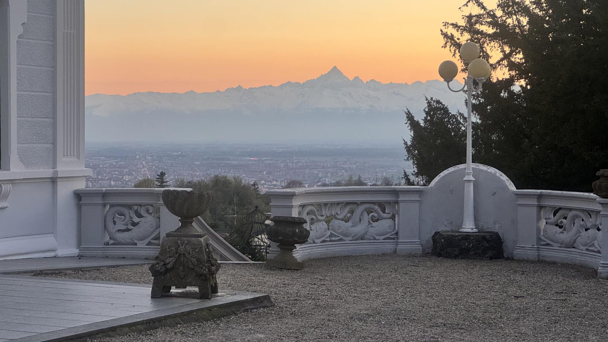 Affacciarsi dalle terrazze di Villa Somis significa avere Torino ai propri piedi. Ma il vero protagonista è l'orizzonte: nelle giornate limpide, il Monviso si staglia imponente come un guardiano di pietra, incorniciando i tramonti in un gioco di luci che trasforma ogni evento in un’opera d’arte vivente.