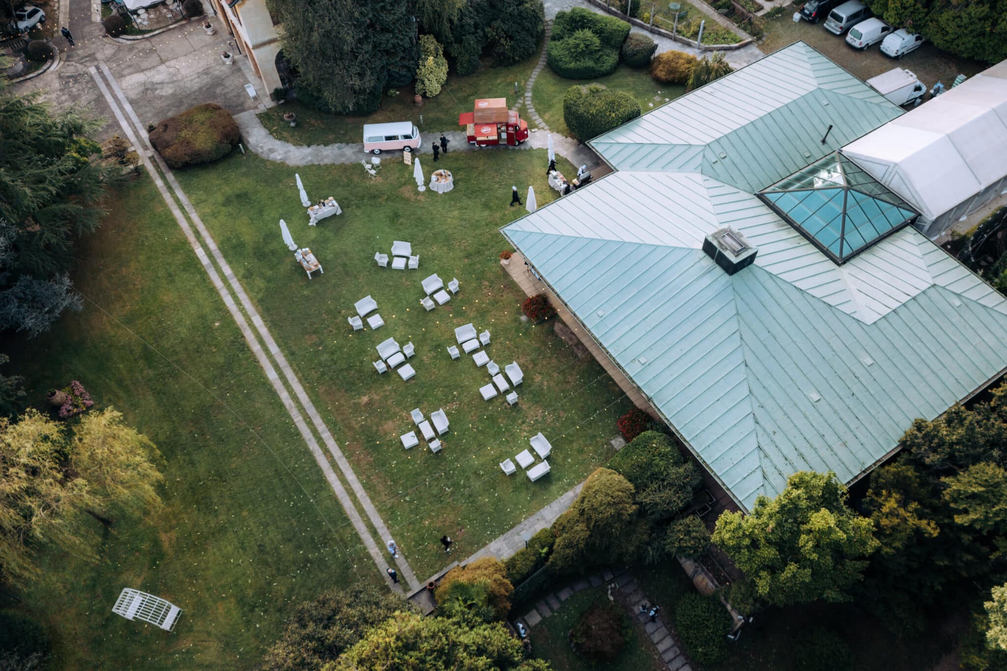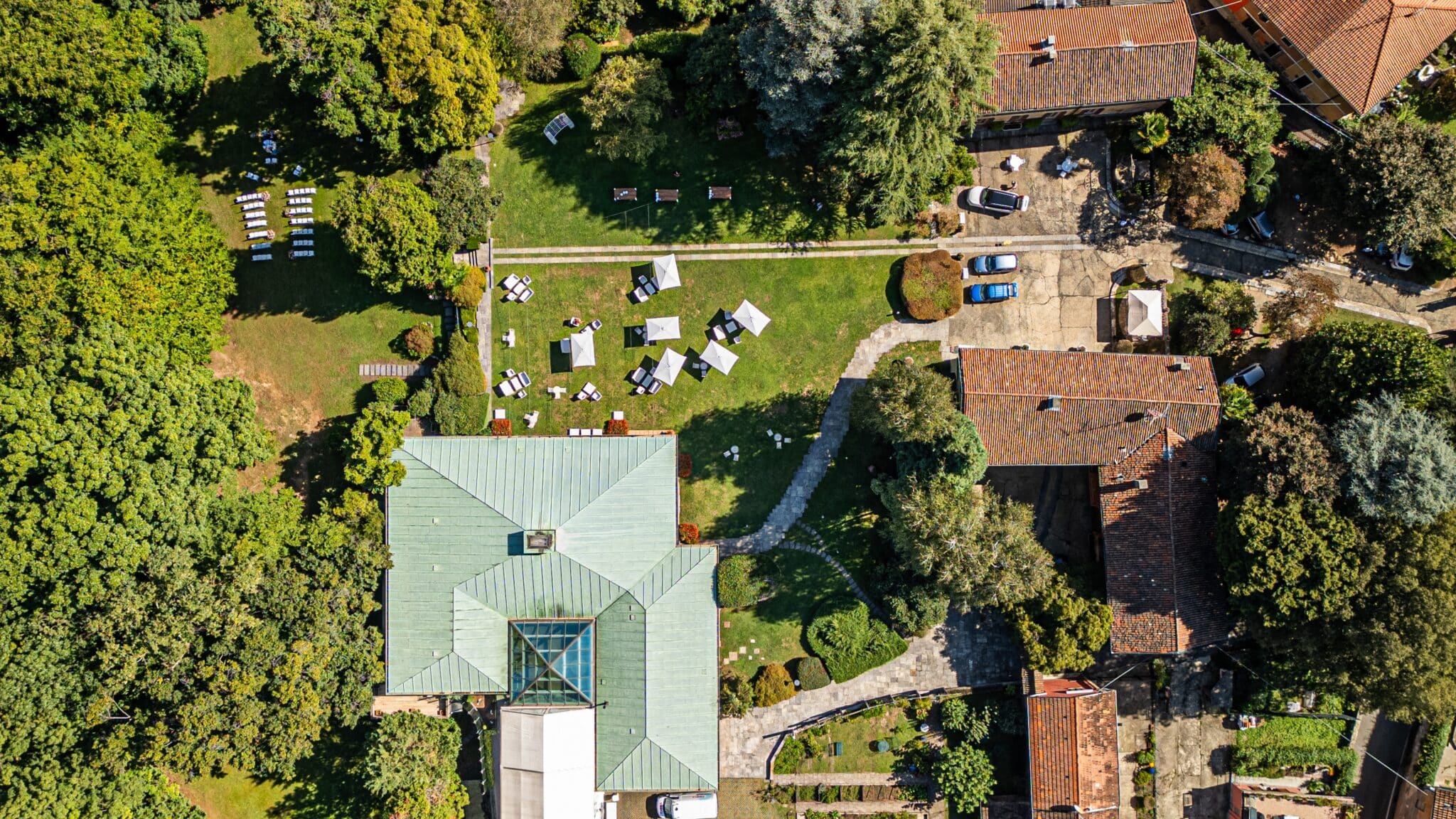 Immersa in un contesto naturale, la proprietà si estende su un’area complessiva di 10.000 mq tra parco privato e area boschiva, offrendo un ambiente di assoluta quiete e riservatezza, ideale per ospitare eventi aziendali, produzioni foto e video, presentazioni, meeting e ricevimenti esclusivi.
